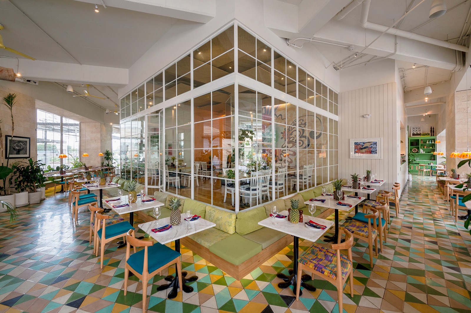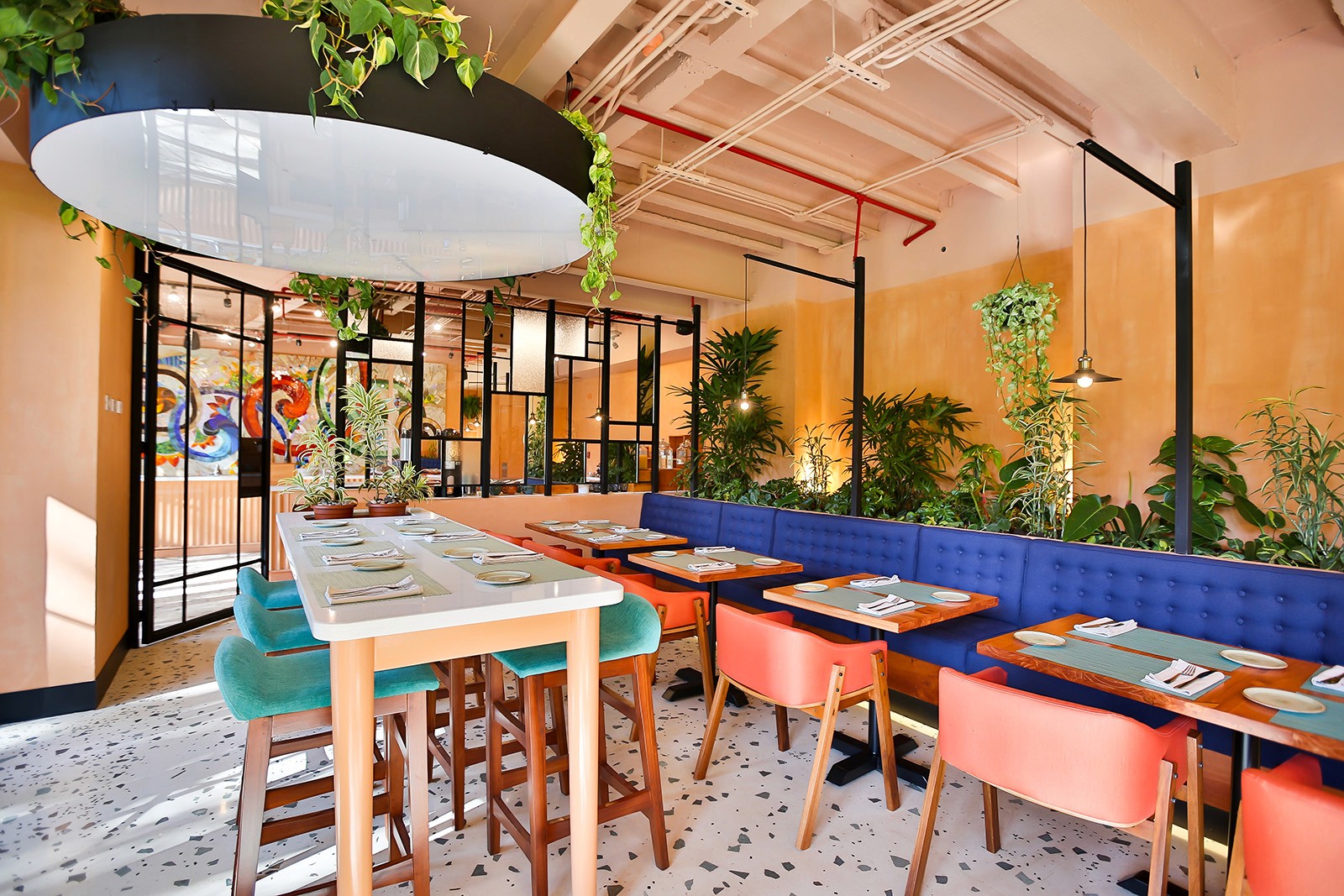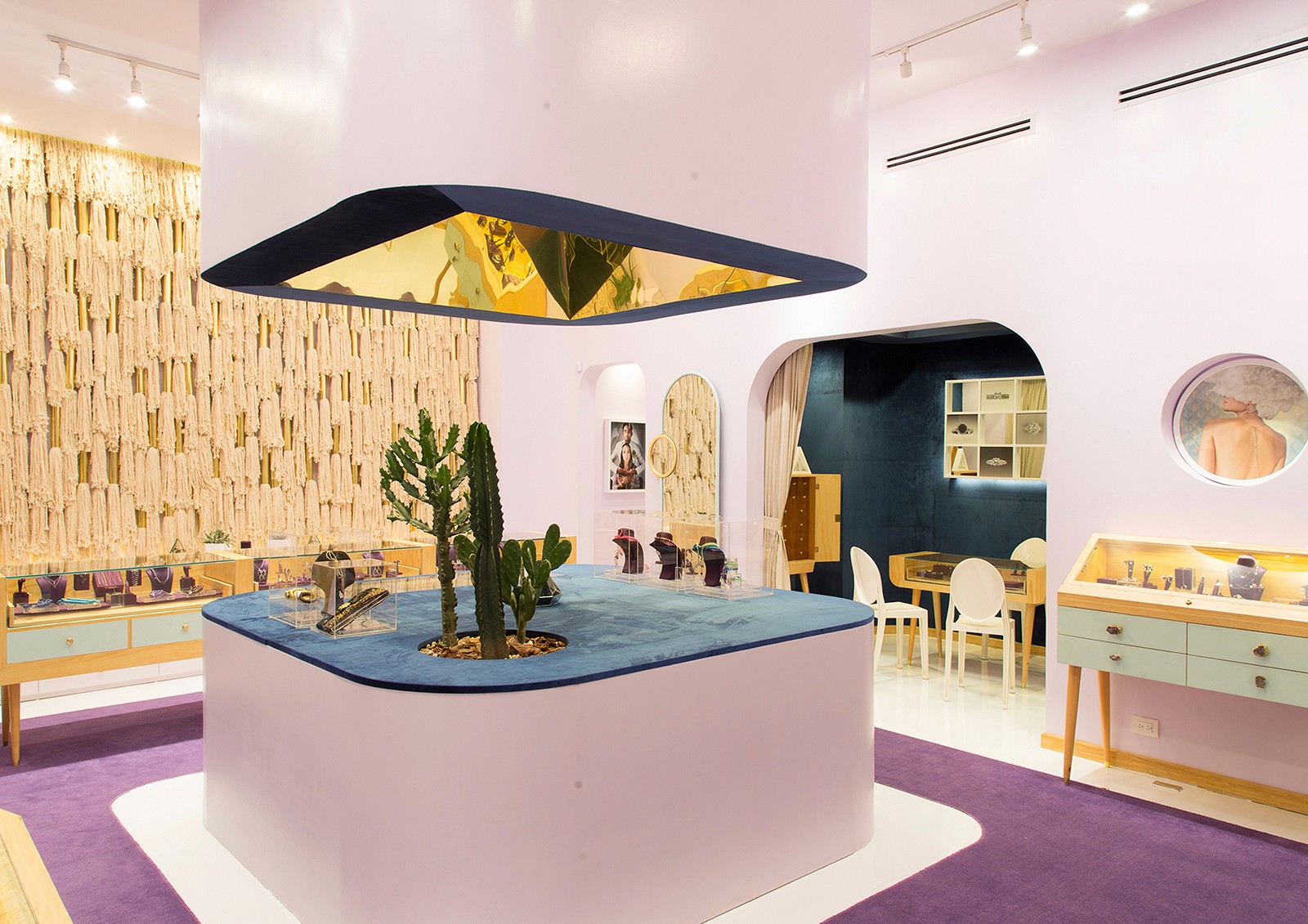 Large open day-lit spaces with brightly colored elements instill a friendly and enthusiastic approach to exercise. To develop the combination of graphic patterns, materials and textures we worked very closely on brand conception with Milk n’ Cookies, a local design and digit agency. The goal was to create a look and feel in the branding material and physical space that were geared toward adults and young people who are more interested in light cardio fitness and in traditional bodybuilding. In order to reach the main workout area, members ascend a sculptural yellow staircase after passing through a narrow mirror corridor with a hexagon overlay, to access the locker area.