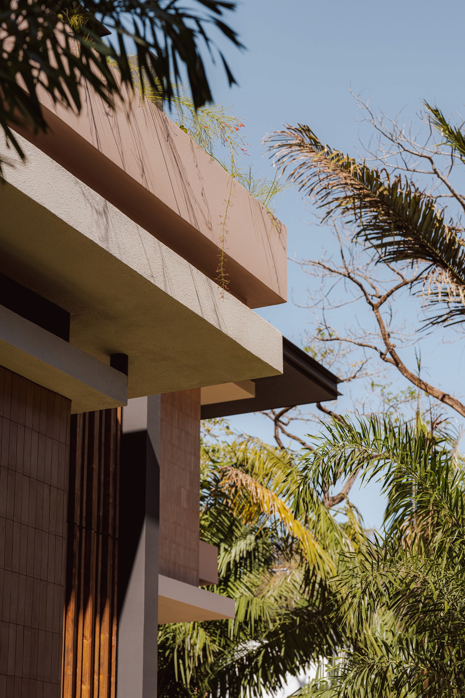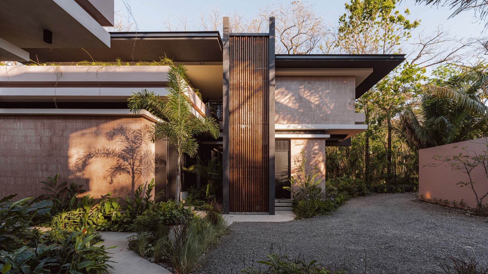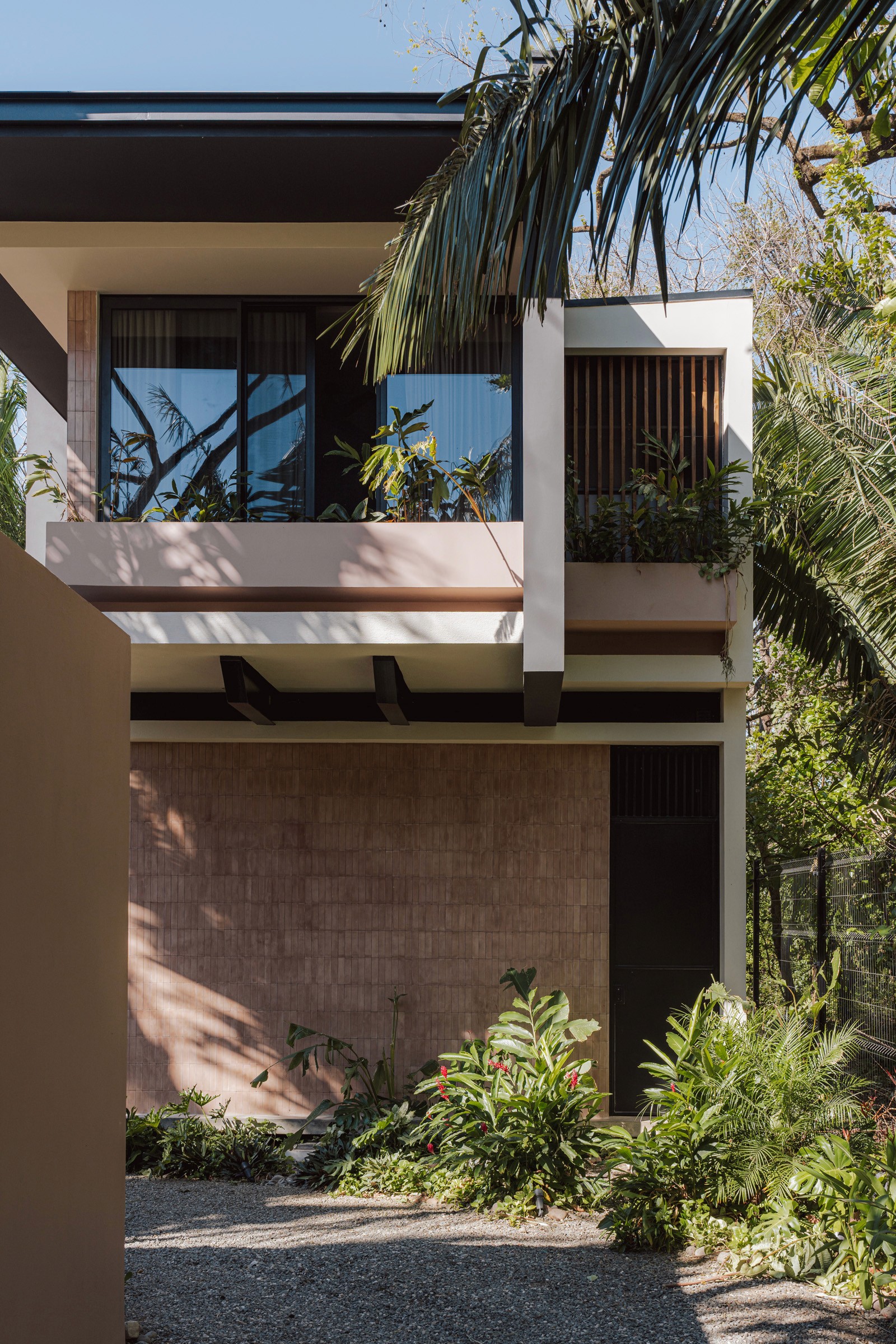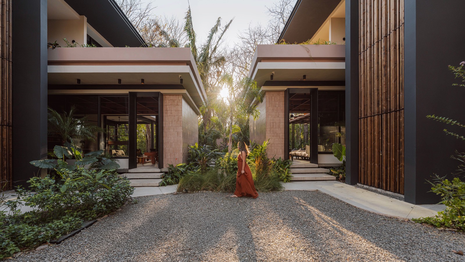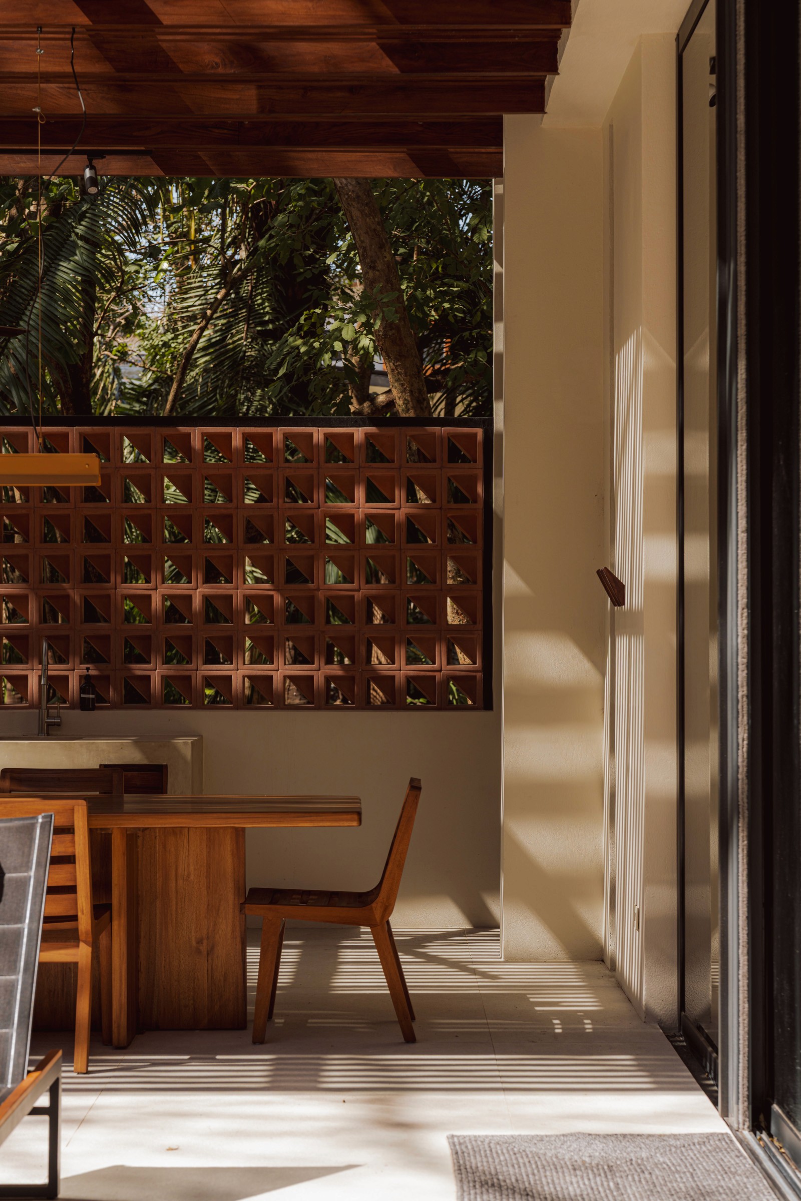 A pair of tropical homes designed to merge architecture, interiors, and landscape into one seamless experience. Two interconnected volumes balance solidity and openness, using textured masonry and vertical wood screens to frame light, breeze, and views of the surrounding forest. Taller Ken crafted the interior design with a warm, tactile palette—natural hardwoods, handcrafted tiles, terrazzo, and custom millwork—creating spaces that feel refined yet deeply connected to place. Sliding glass panels extend the social areas into shaded terraces and outdoor dining spaces, embracing Nosara’s climate and lifestyle. Casa Kallo is a relaxed, immersive retreat shaped by materiality, light, and the rhythms of coastal living.