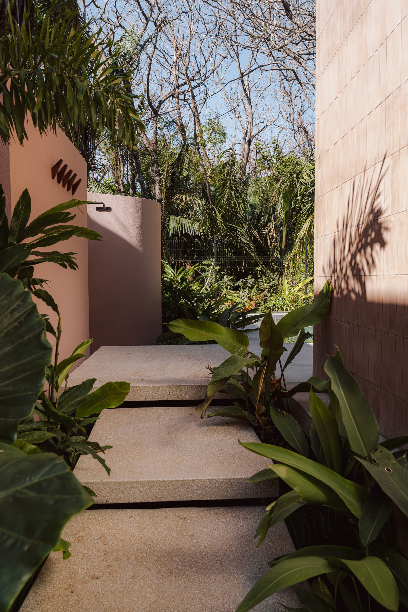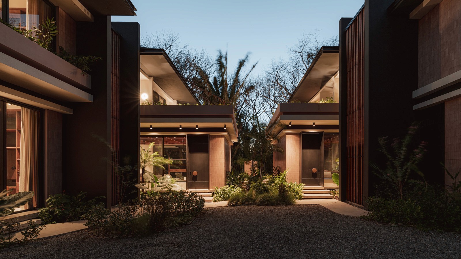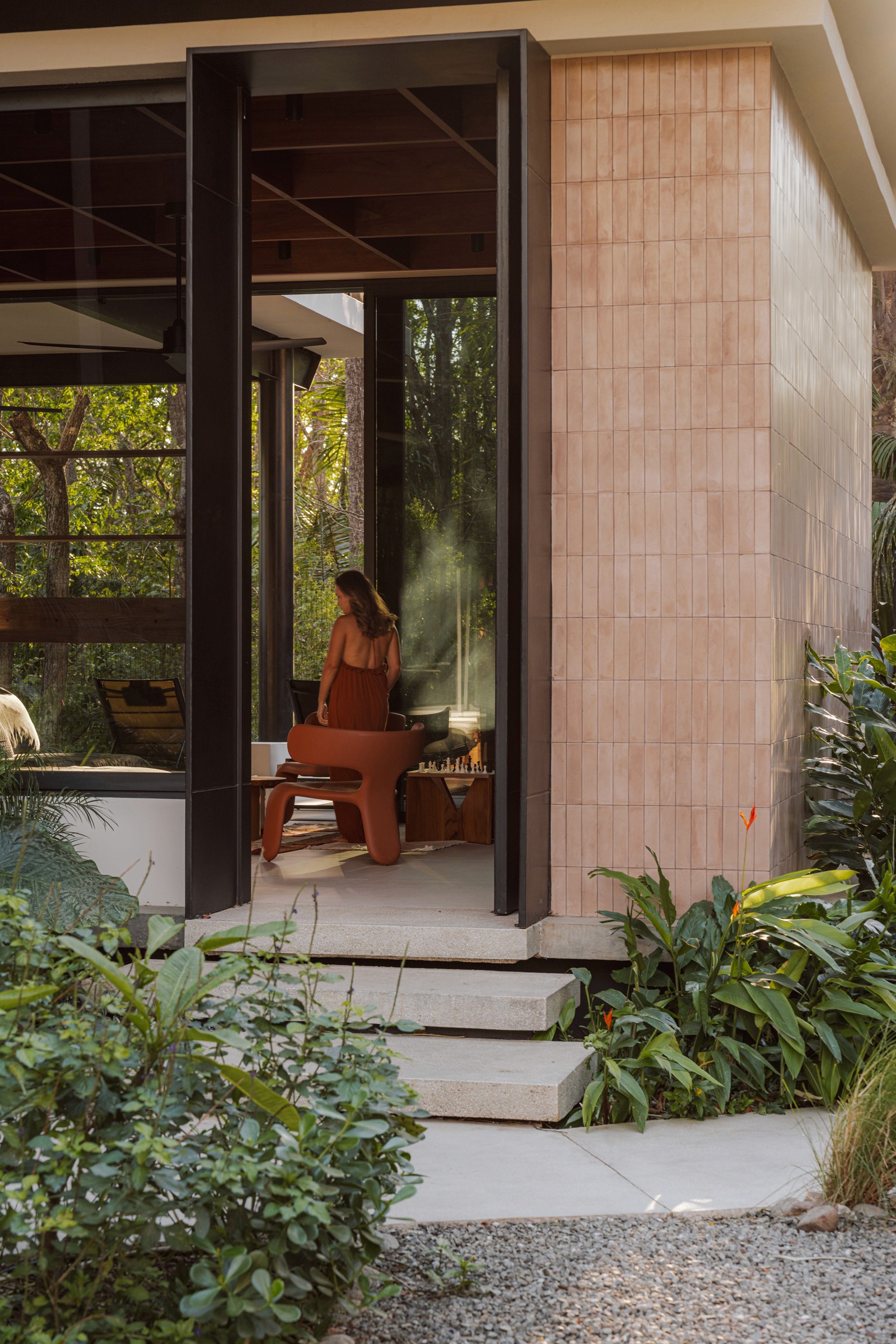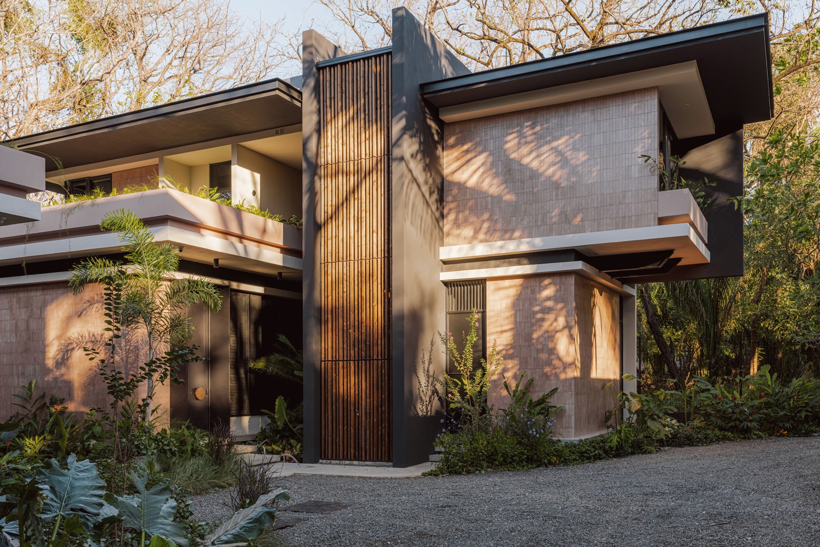 A pair of tropical homes designed to merge architecture, interiors, and landscape into one seamless experience. Two interconnected volumes balance solidity and openness, using textured masonry and vertical wood screens to frame light, breeze, and views of the surrounding forest. Taller Ken crafted the interior design with a warm, tactile palette—natural hardwoods, handcrafted tiles, terrazzo, and custom millwork—creating spaces that feel refined yet deeply connected to place. Sliding glass panels extend the social areas into shaded terraces and outdoor dining spaces, embracing Nosara’s climate and lifestyle. Casa Kallo is a relaxed, immersive retreat shaped by materiality, light, and the rhythms of coastal living.