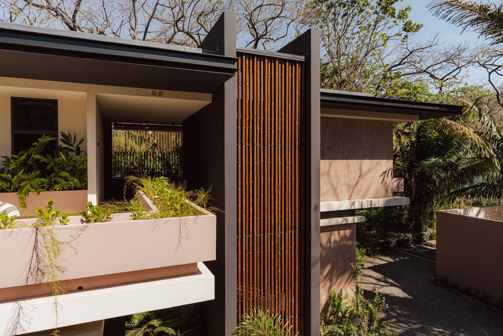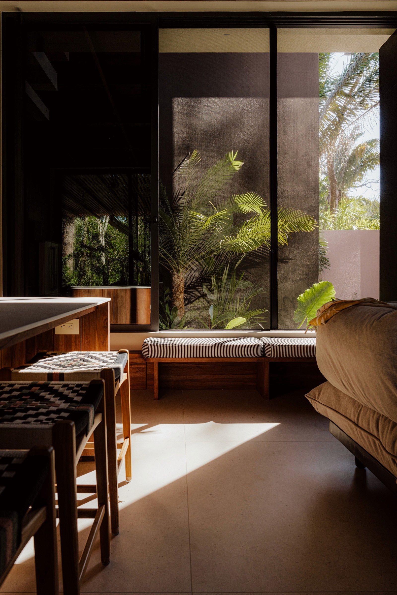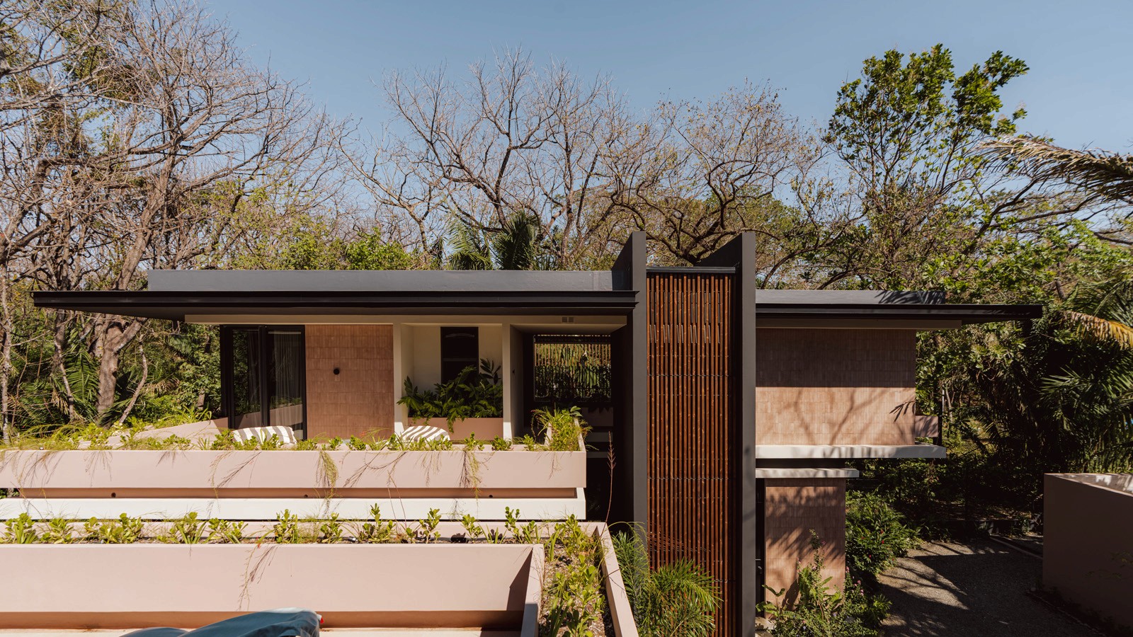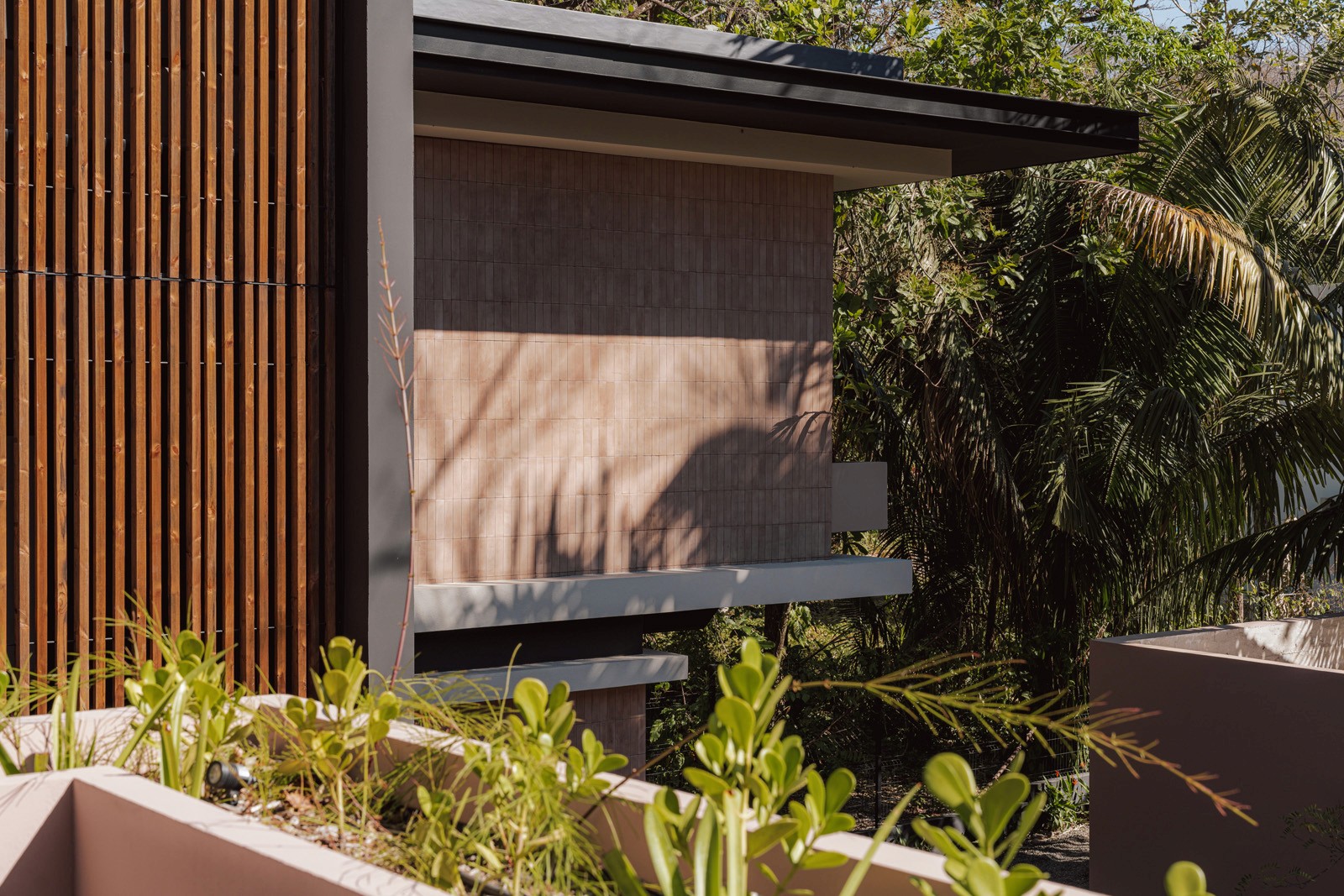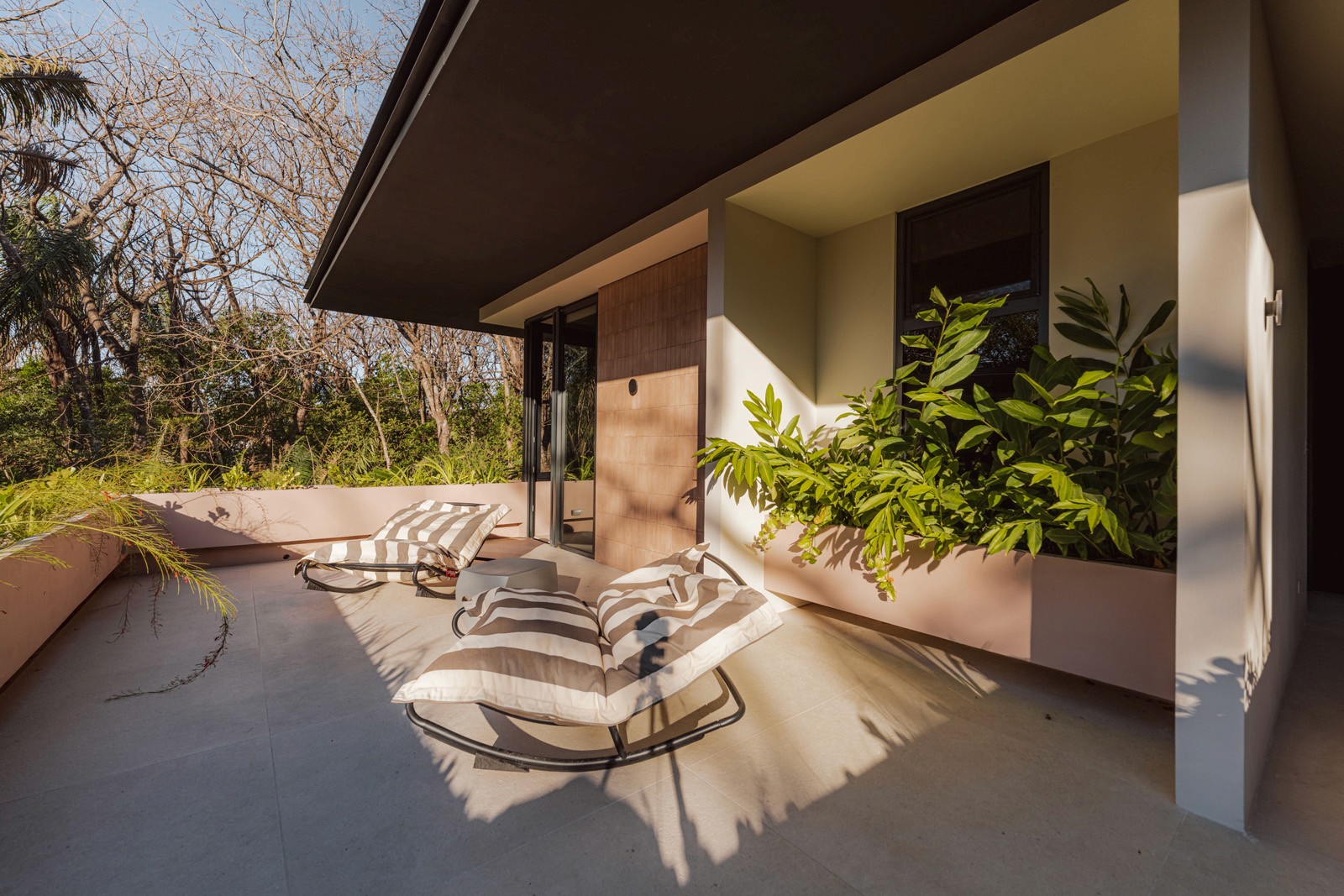 A pair of tropical homes designed to merge architecture, interiors, and landscape into one seamless experience. Two interconnected volumes balance solidity and openness, using textured masonry and vertical wood screens to frame light, breeze, and views of the surrounding forest. Taller Ken crafted the interior design with a warm, tactile palette—natural hardwoods, handcrafted tiles, terrazzo, and custom millwork—creating spaces that feel refined yet deeply connected to place. Sliding glass panels extend the social areas into shaded terraces and outdoor dining spaces, embracing Nosara’s climate and lifestyle. Casa Kallo is a relaxed, immersive retreat shaped by materiality, light, and the rhythms of coastal living.