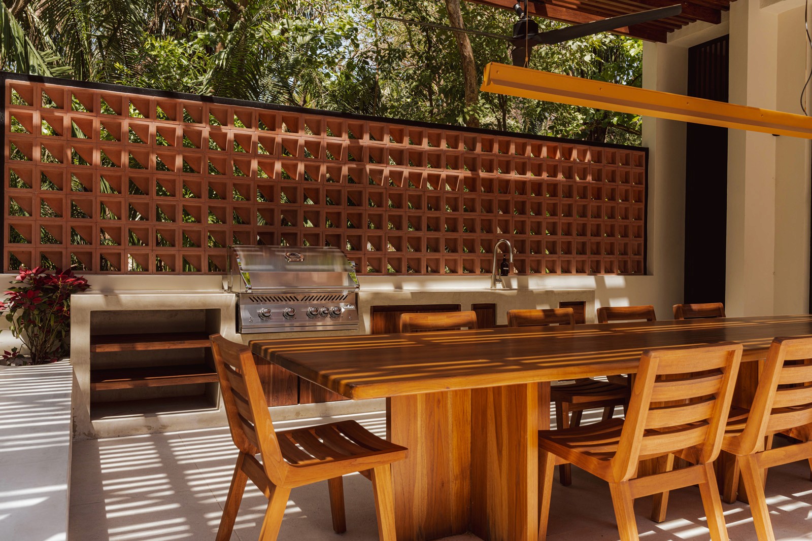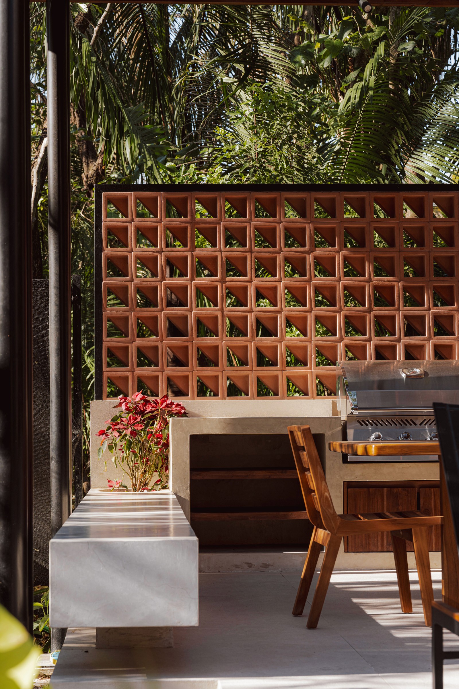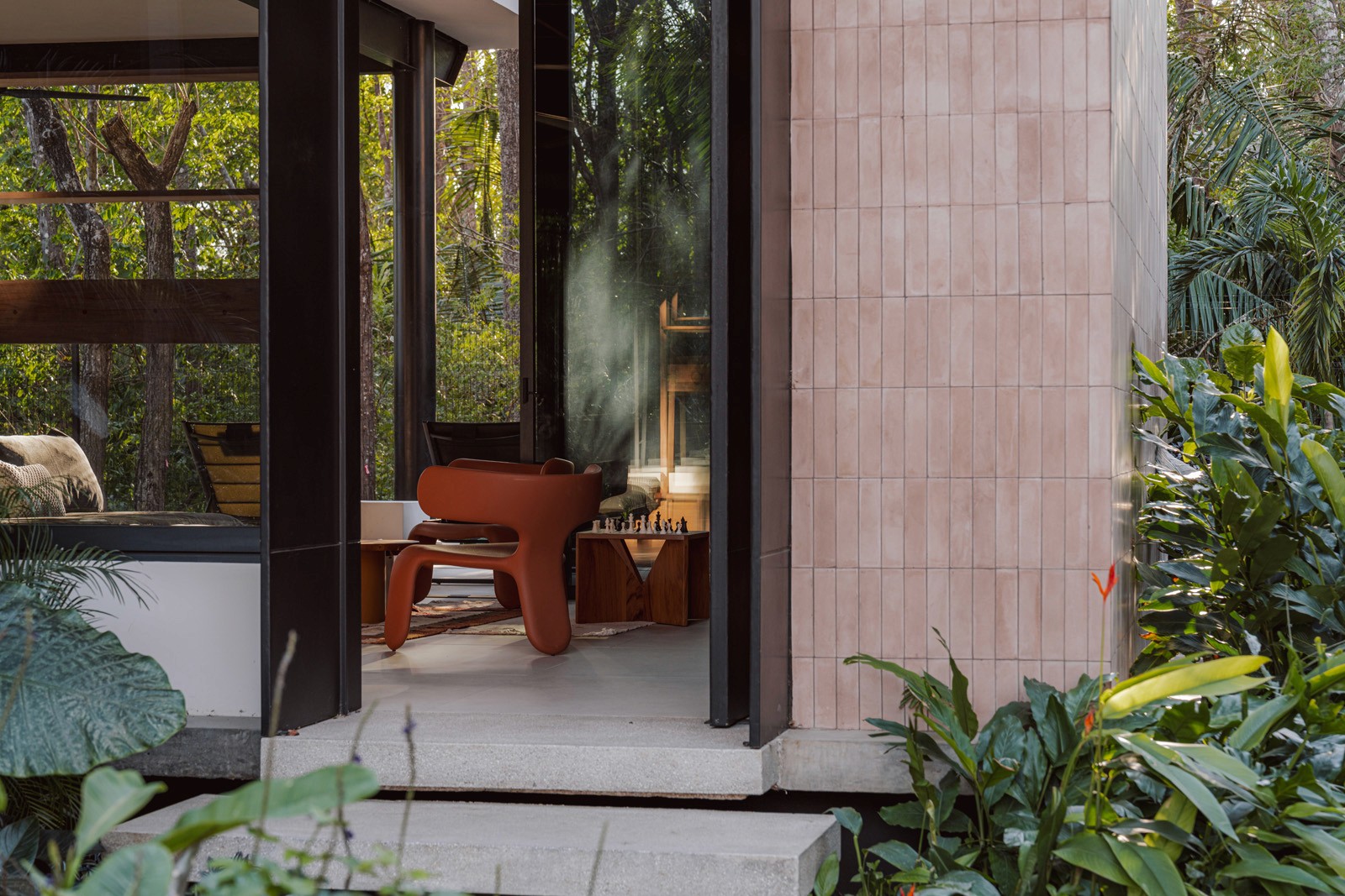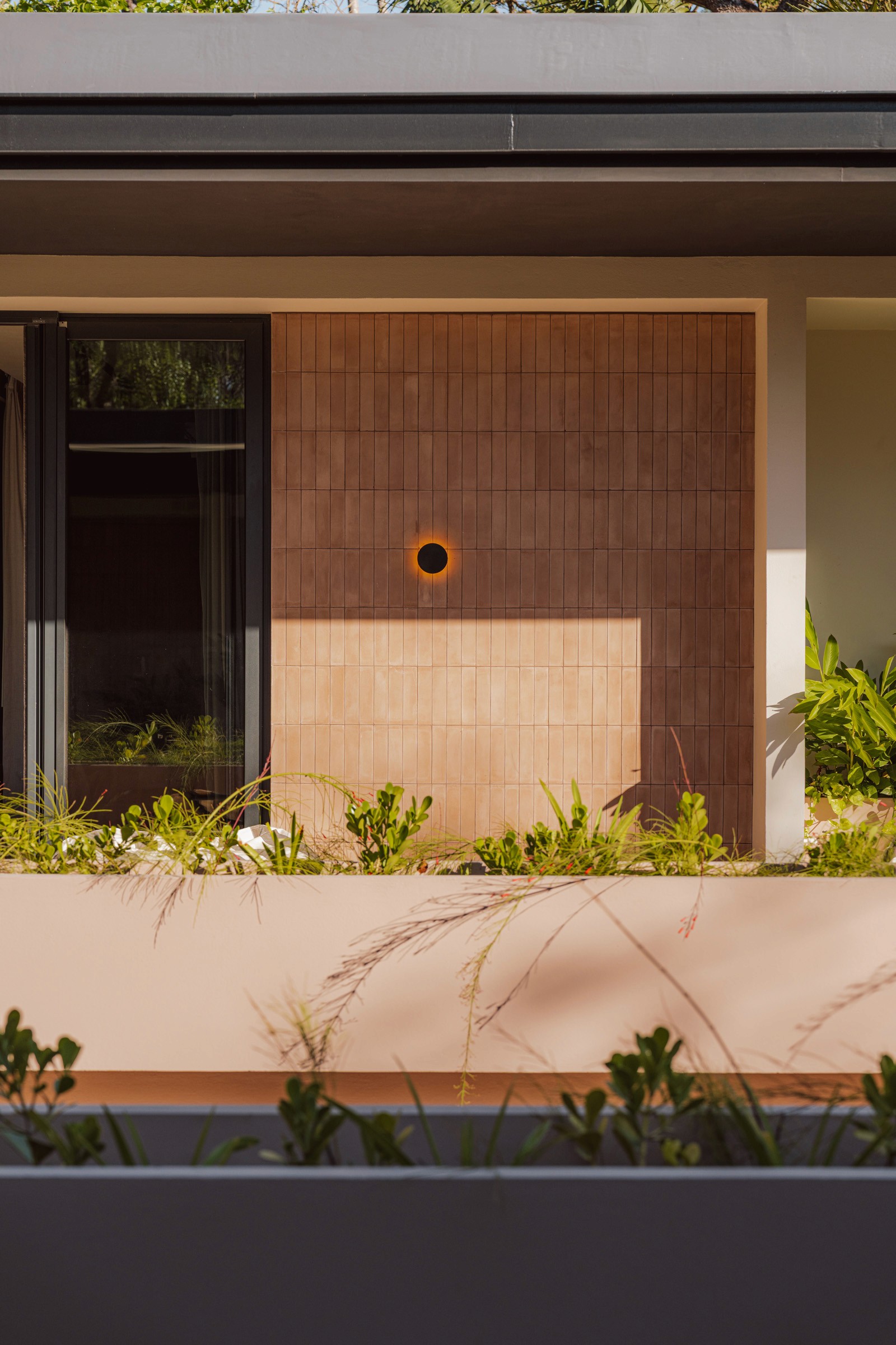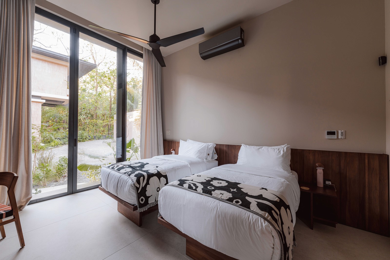 A pair of tropical homes designed to merge architecture, interiors, and landscape into one seamless experience. Two interconnected volumes balance solidity and openness, using textured masonry and vertical wood screens to frame light, breeze, and views of the surrounding forest. Taller Ken crafted the interior design with a warm, tactile palette—natural hardwoods, handcrafted tiles, terrazzo, and custom millwork—creating spaces that feel refined yet deeply connected to place. Sliding glass panels extend the social areas into shaded terraces and outdoor dining spaces, embracing Nosara’s climate and lifestyle. Casa Kallo is a relaxed, immersive retreat shaped by materiality, light, and the rhythms of coastal living.