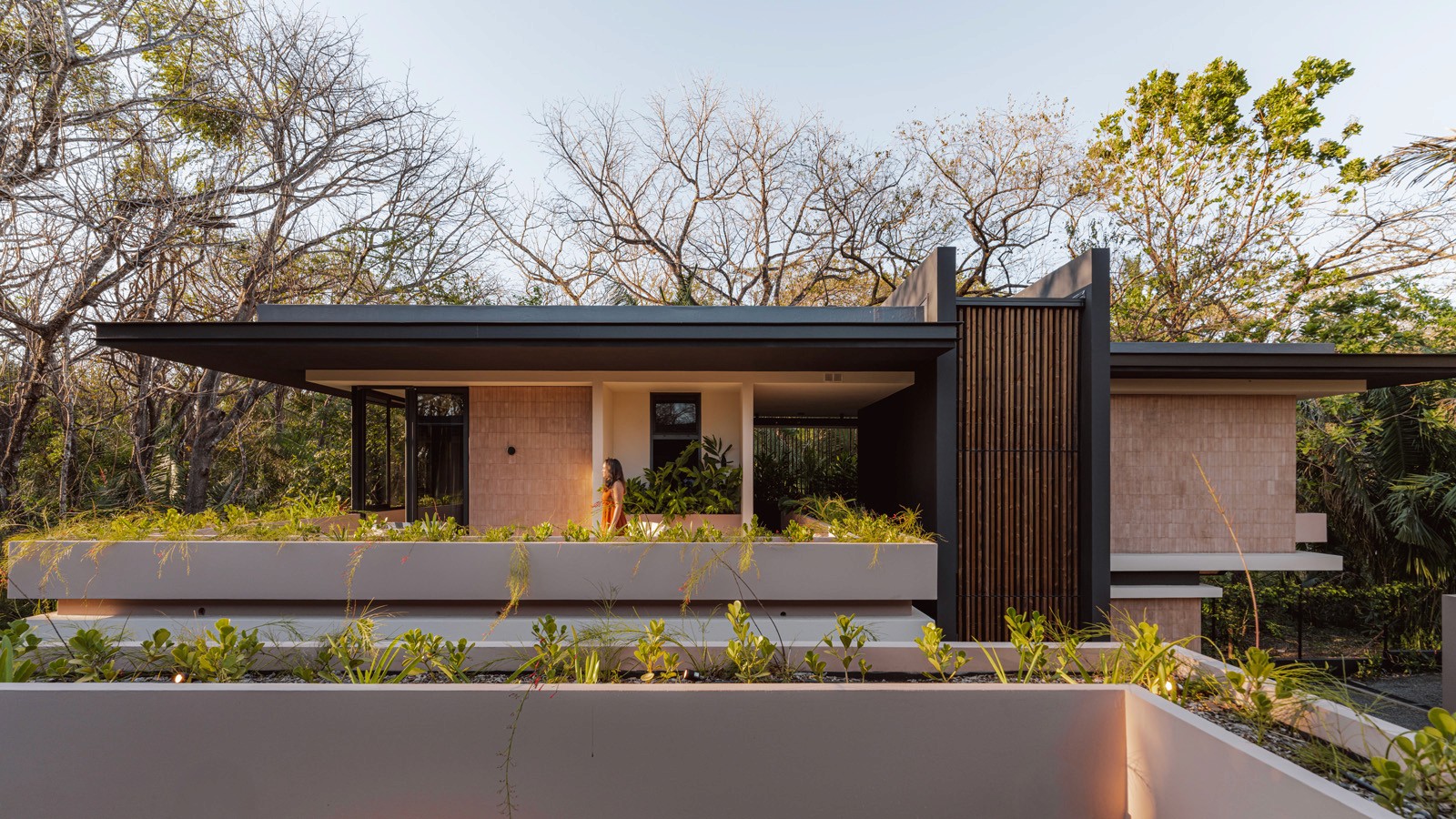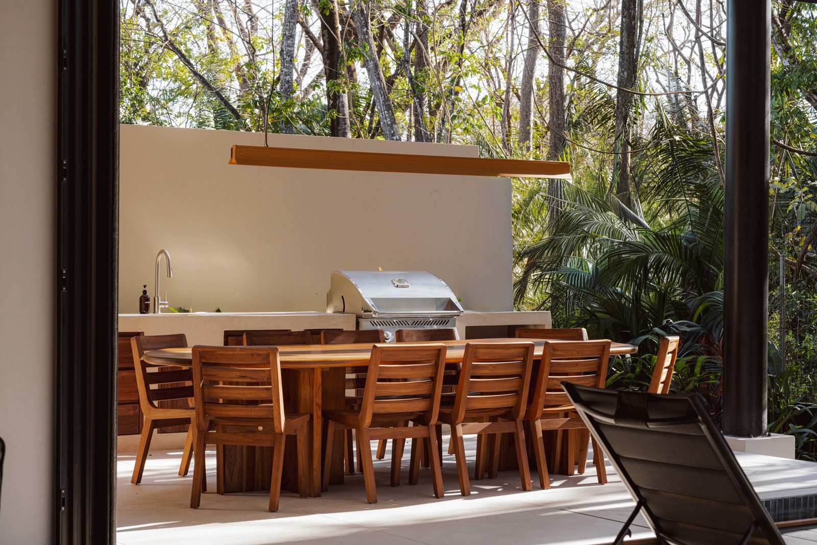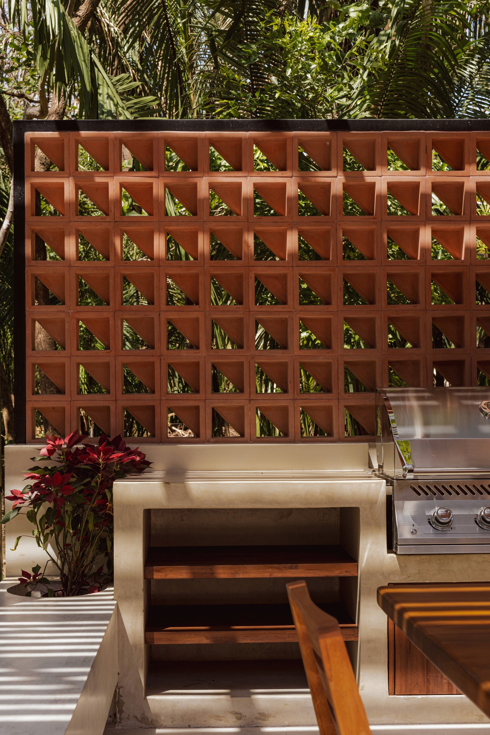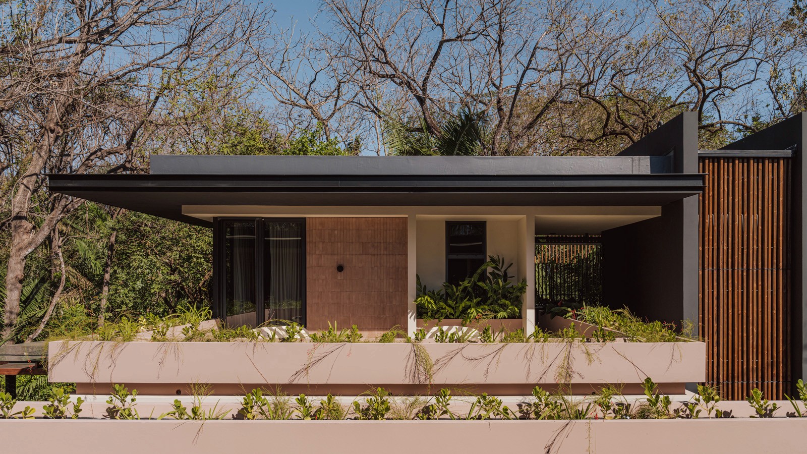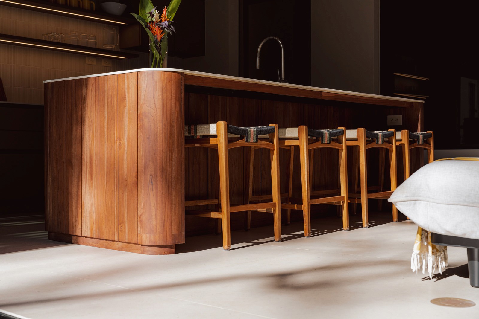 A pair of tropical homes designed to merge architecture, interiors, and landscape into one seamless experience. Two interconnected volumes balance solidity and openness, using textured masonry and vertical wood screens to frame light, breeze, and views of the surrounding forest. Taller Ken crafted the interior design with a warm, tactile palette—natural hardwoods, handcrafted tiles, terrazzo, and custom millwork—creating spaces that feel refined yet deeply connected to place. Sliding glass panels extend the social areas into shaded terraces and outdoor dining spaces, embracing Nosara’s climate and lifestyle. Casa Kallo is a relaxed, immersive retreat shaped by materiality, light, and the rhythms of coastal living.