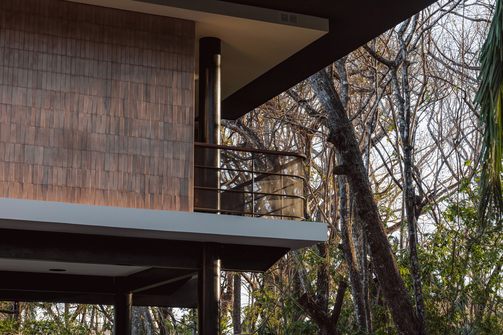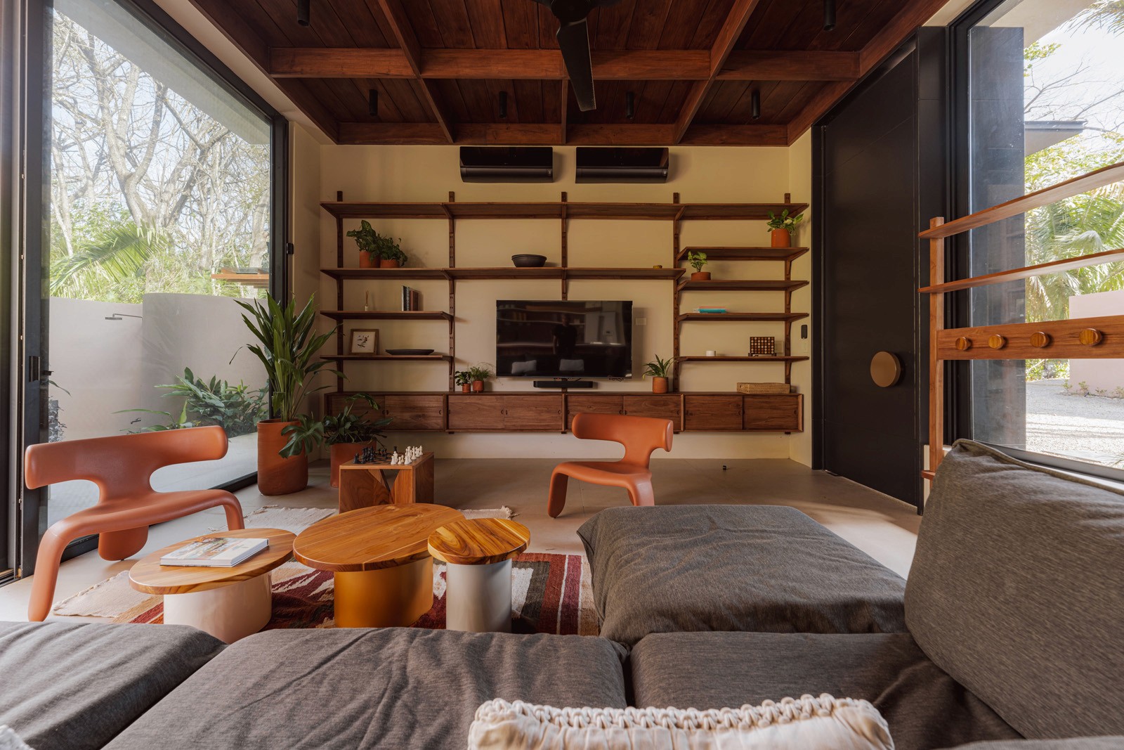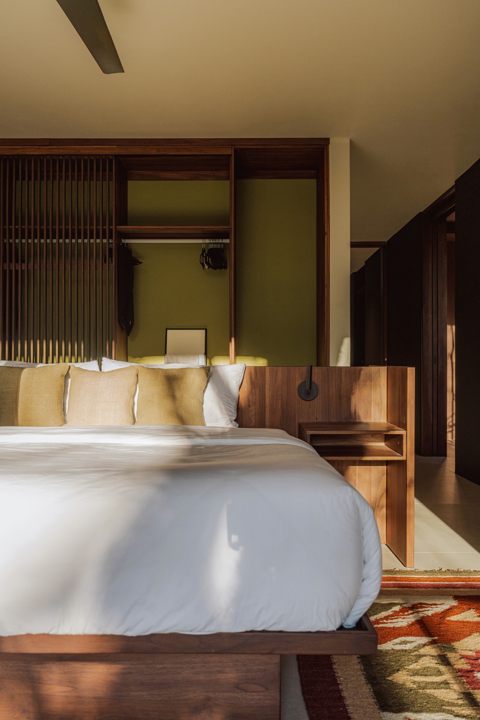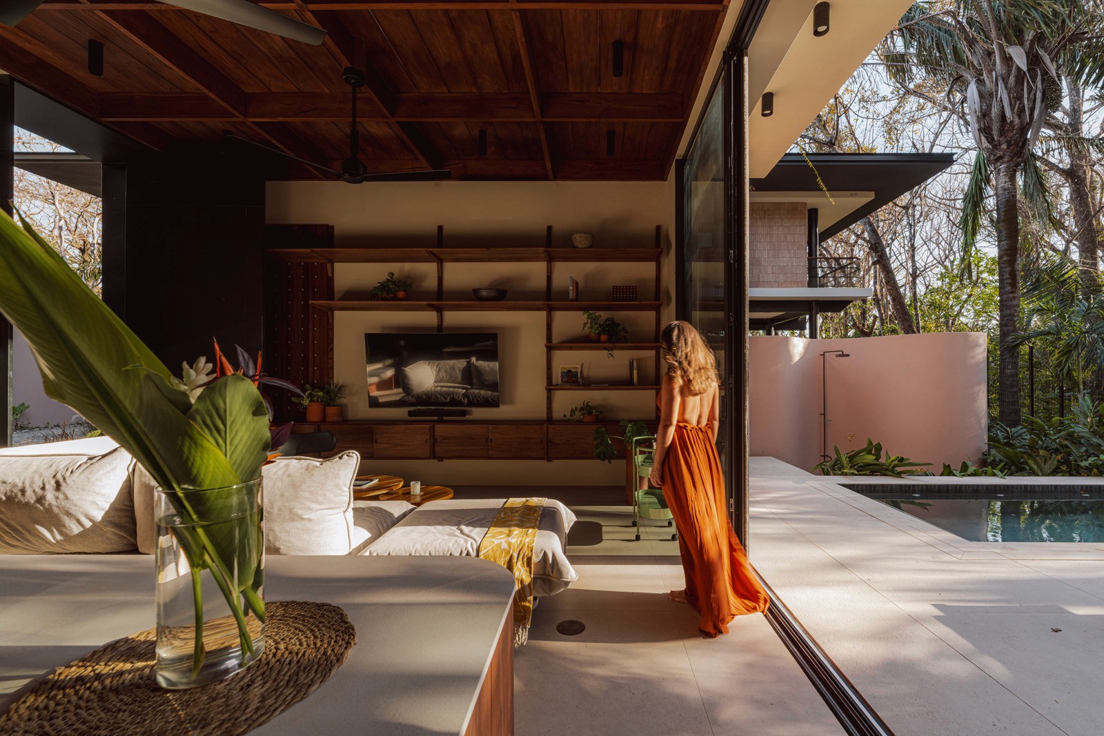 A pair of tropical homes designed to merge architecture, interiors, and landscape into one seamless experience. Two interconnected volumes balance solidity and openness, using textured masonry and vertical wood screens to frame light, breeze, and views of the surrounding forest. Taller Ken crafted the interior design with a warm, tactile palette—natural hardwoods, handcrafted tiles, terrazzo, and custom millwork—creating spaces that feel refined yet deeply connected to place. Sliding glass panels extend the social areas into shaded terraces and outdoor dining spaces, embracing Nosara’s climate and lifestyle. Casa Kallo is a relaxed, immersive retreat shaped by materiality, light, and the rhythms of coastal living.