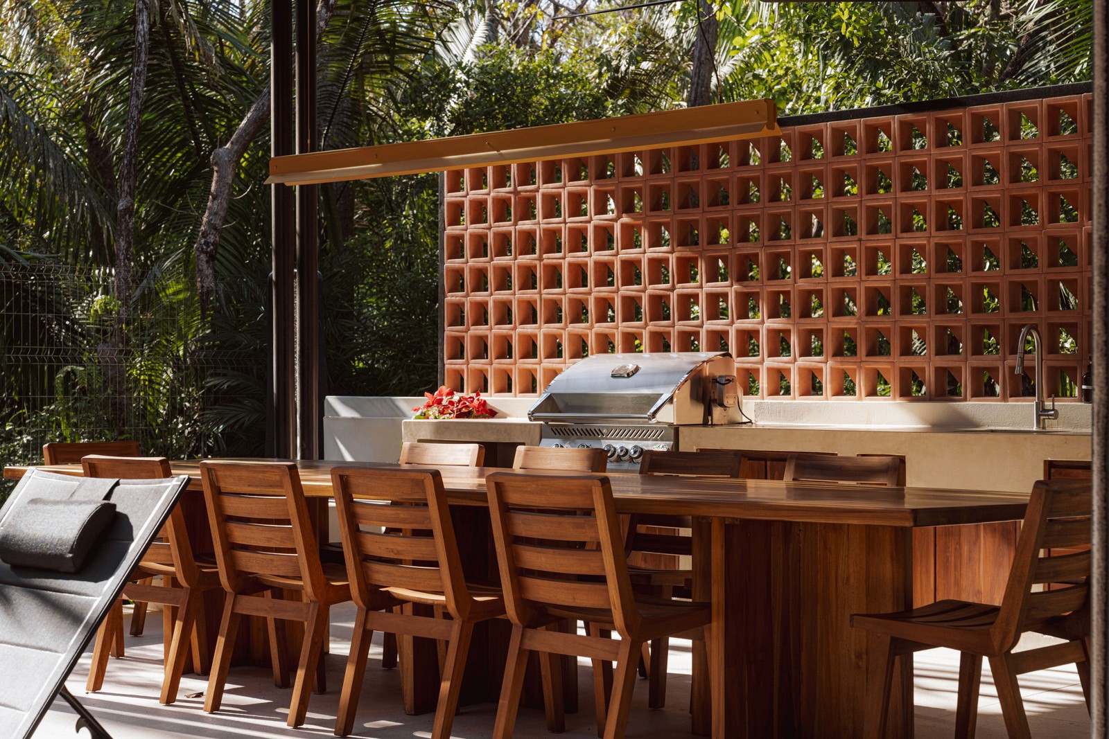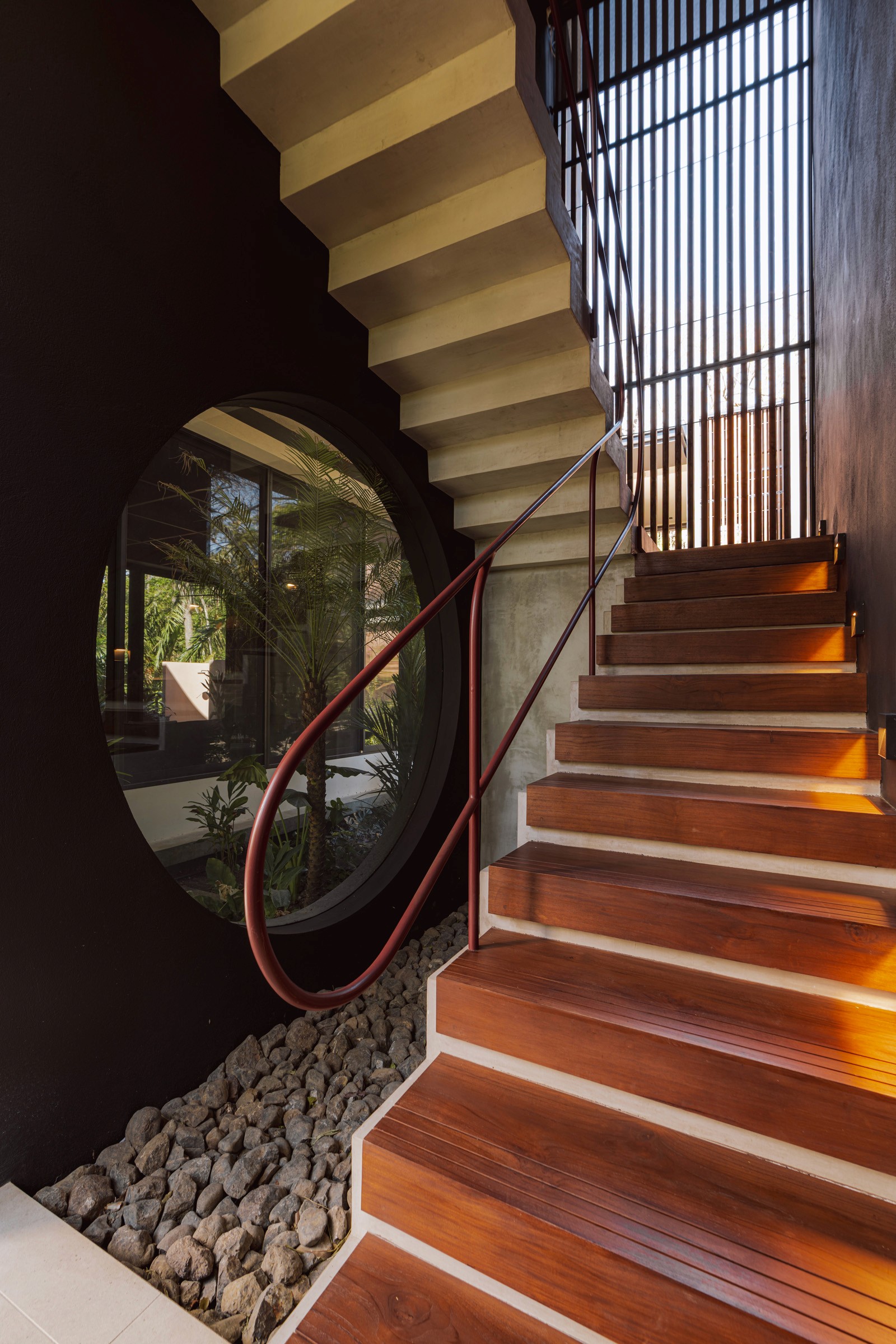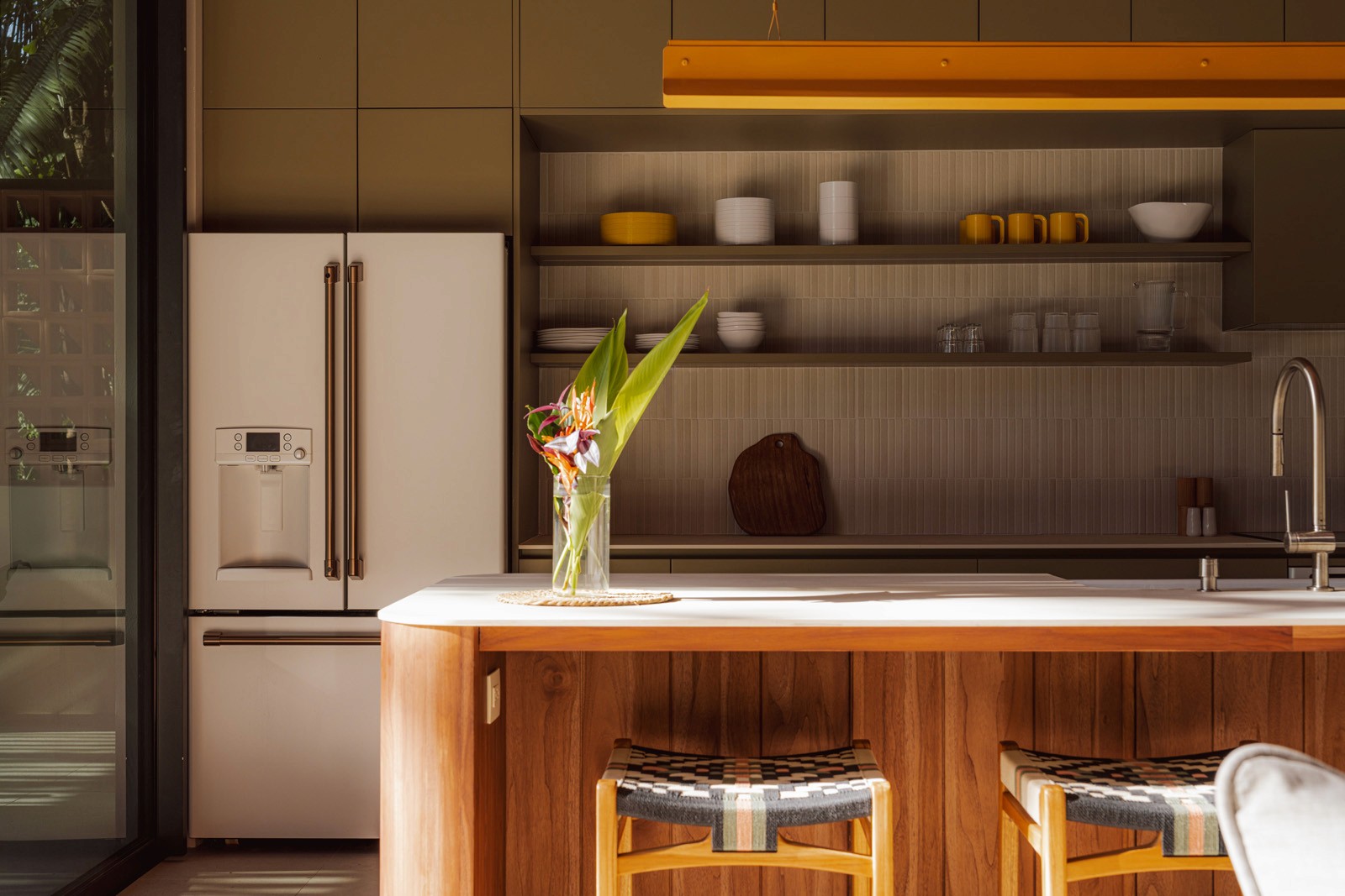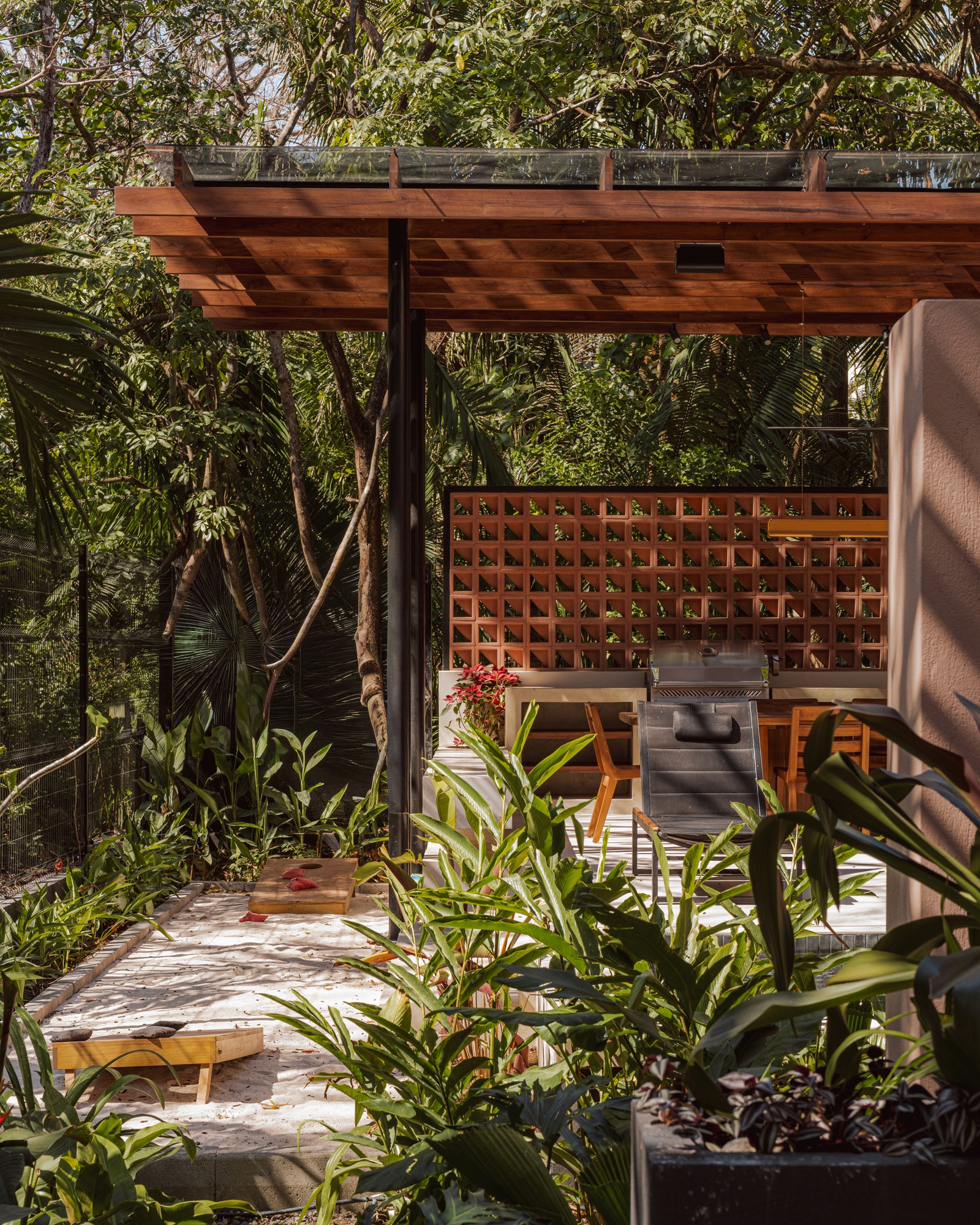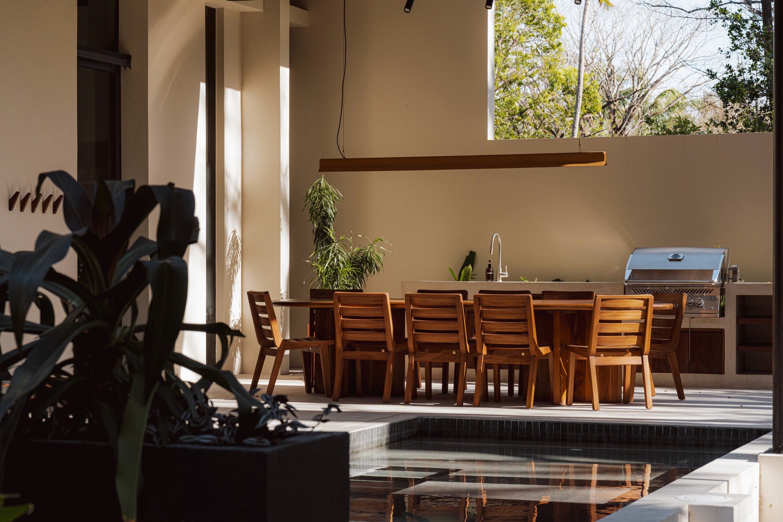 A pair of tropical homes designed to merge architecture, interiors, and landscape into one seamless experience. Two interconnected volumes balance solidity and openness, using textured masonry and vertical wood screens to frame light, breeze, and views of the surrounding forest. Taller Ken crafted the interior design with a warm, tactile palette—natural hardwoods, handcrafted tiles, terrazzo, and custom millwork—creating spaces that feel refined yet deeply connected to place. Sliding glass panels extend the social areas into shaded terraces and outdoor dining spaces, embracing Nosara’s climate and lifestyle. Casa Kallo is a relaxed, immersive retreat shaped by materiality, light, and the rhythms of coastal living.