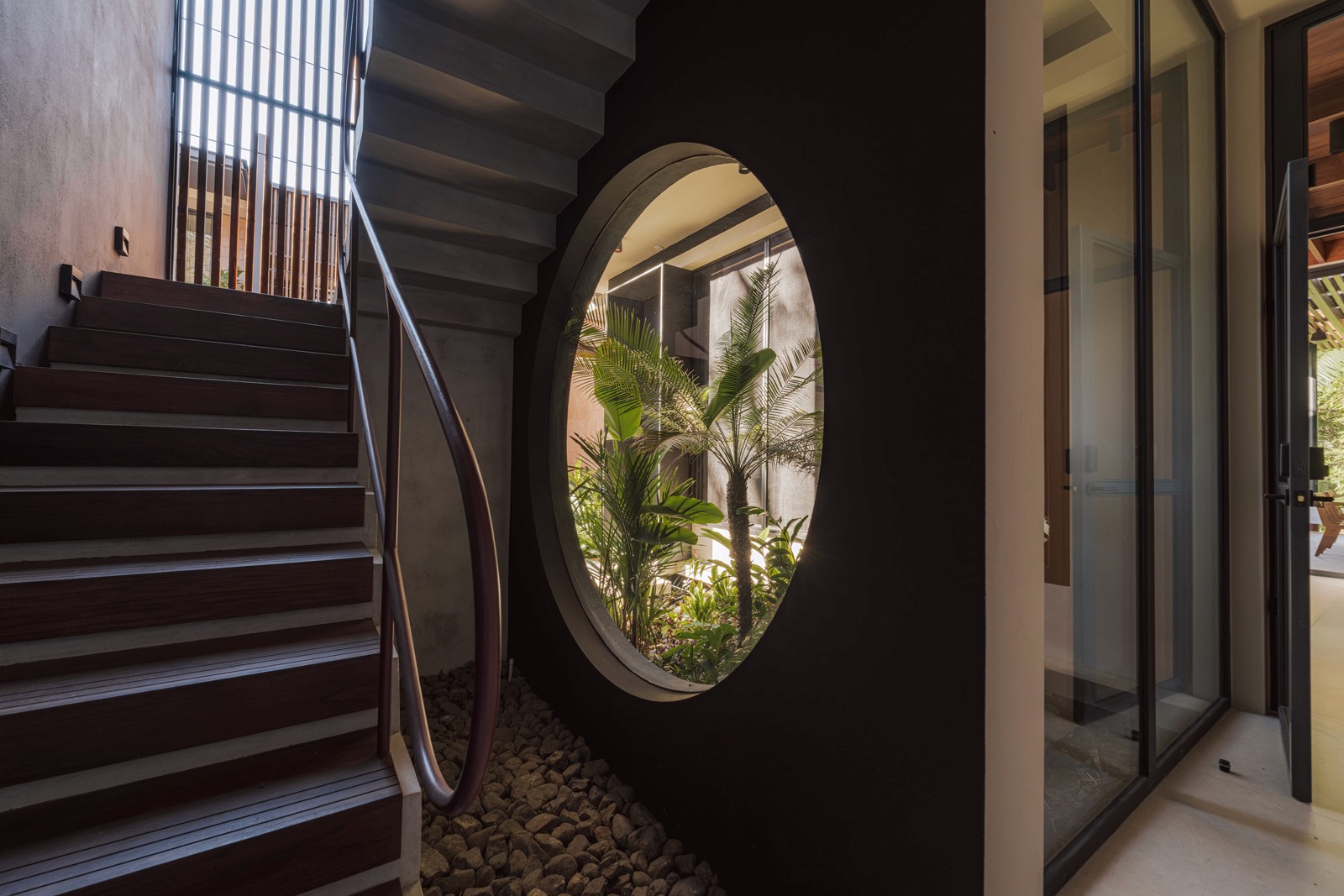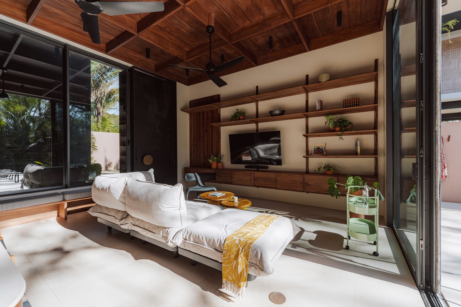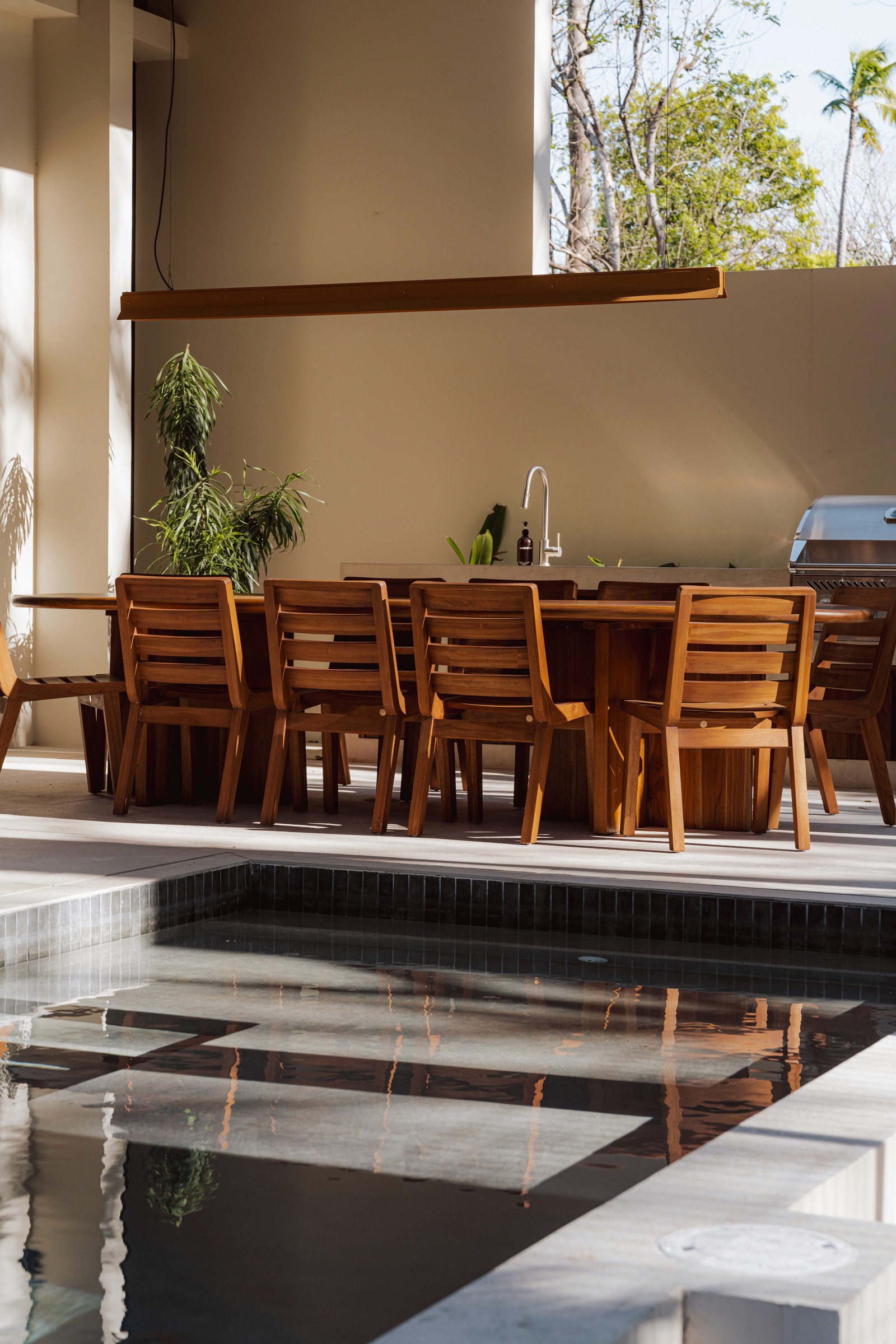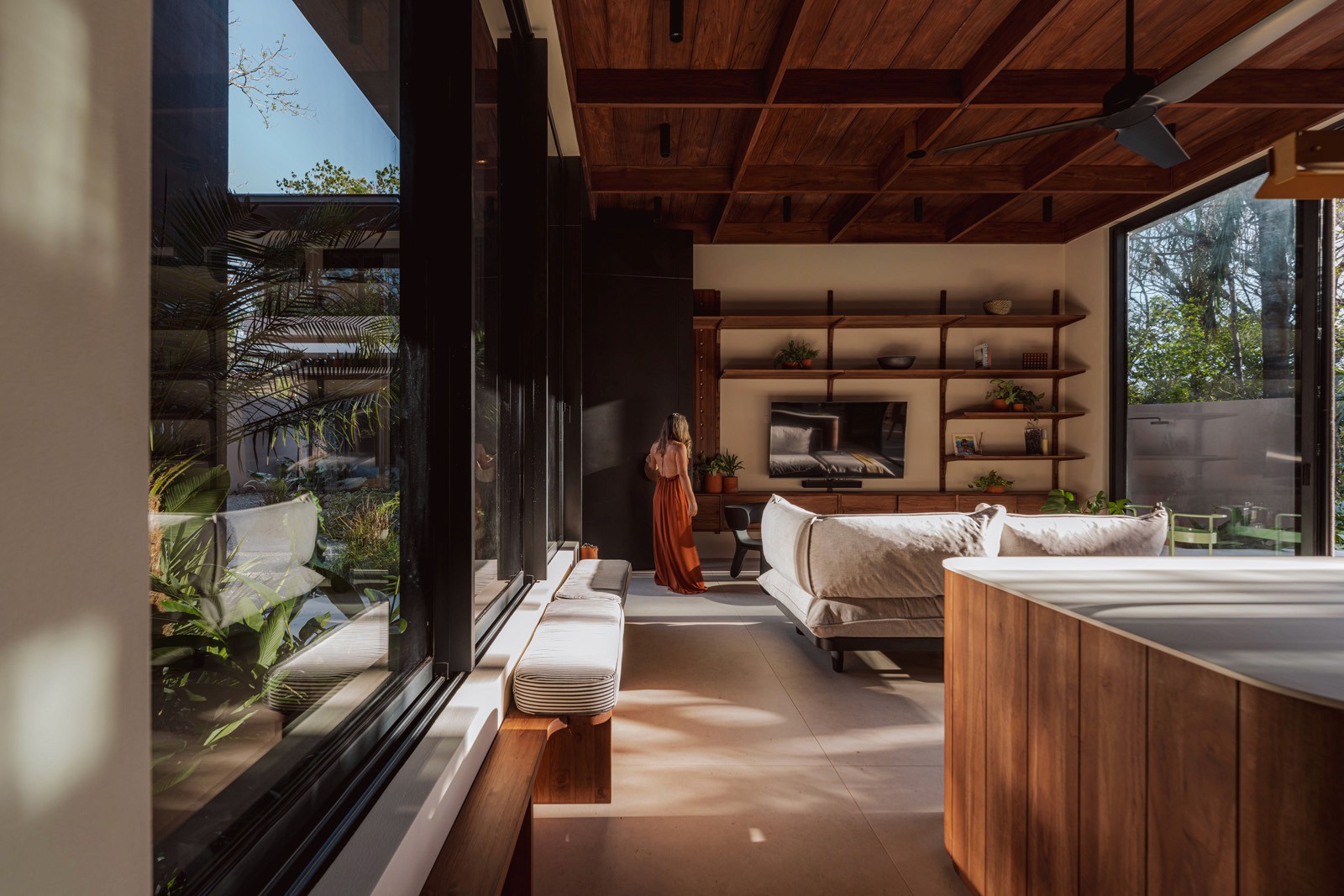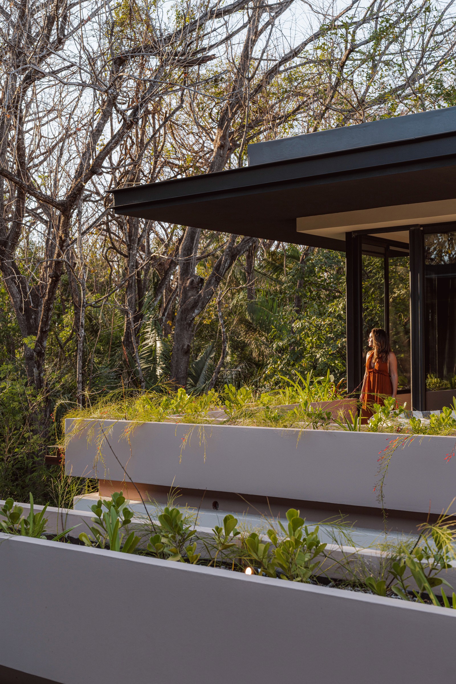A pair of tropical homes designed to merge architecture, interiors, and landscape into one seamless experience. Two interconnected volumes balance solidity and openness, using textured masonry and vertical wood screens to frame light, breeze, and views of the surrounding forest. Taller Ken crafted the interior design with a warm, tactile palette—natural hardwoods, handcrafted tiles, terrazzo, and custom millwork—creating spaces that feel refined yet deeply connected to place. Sliding glass panels extend the social areas into shaded terraces and outdoor dining spaces, embracing Nosara’s climate and lifestyle. Casa Kallo is a relaxed, immersive retreat shaped by materiality, light, and the rhythms of coastal living.