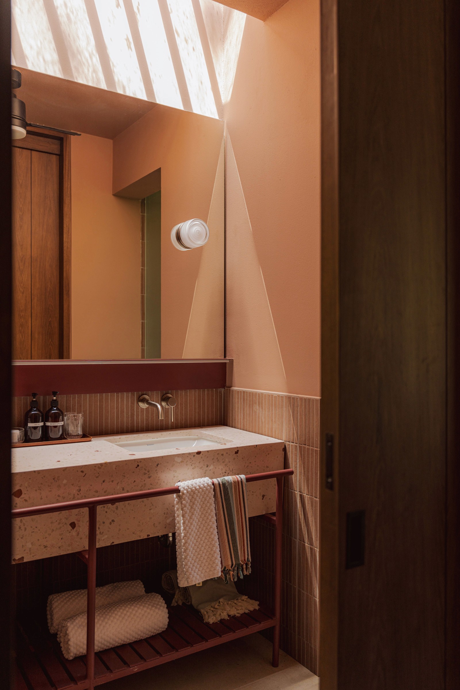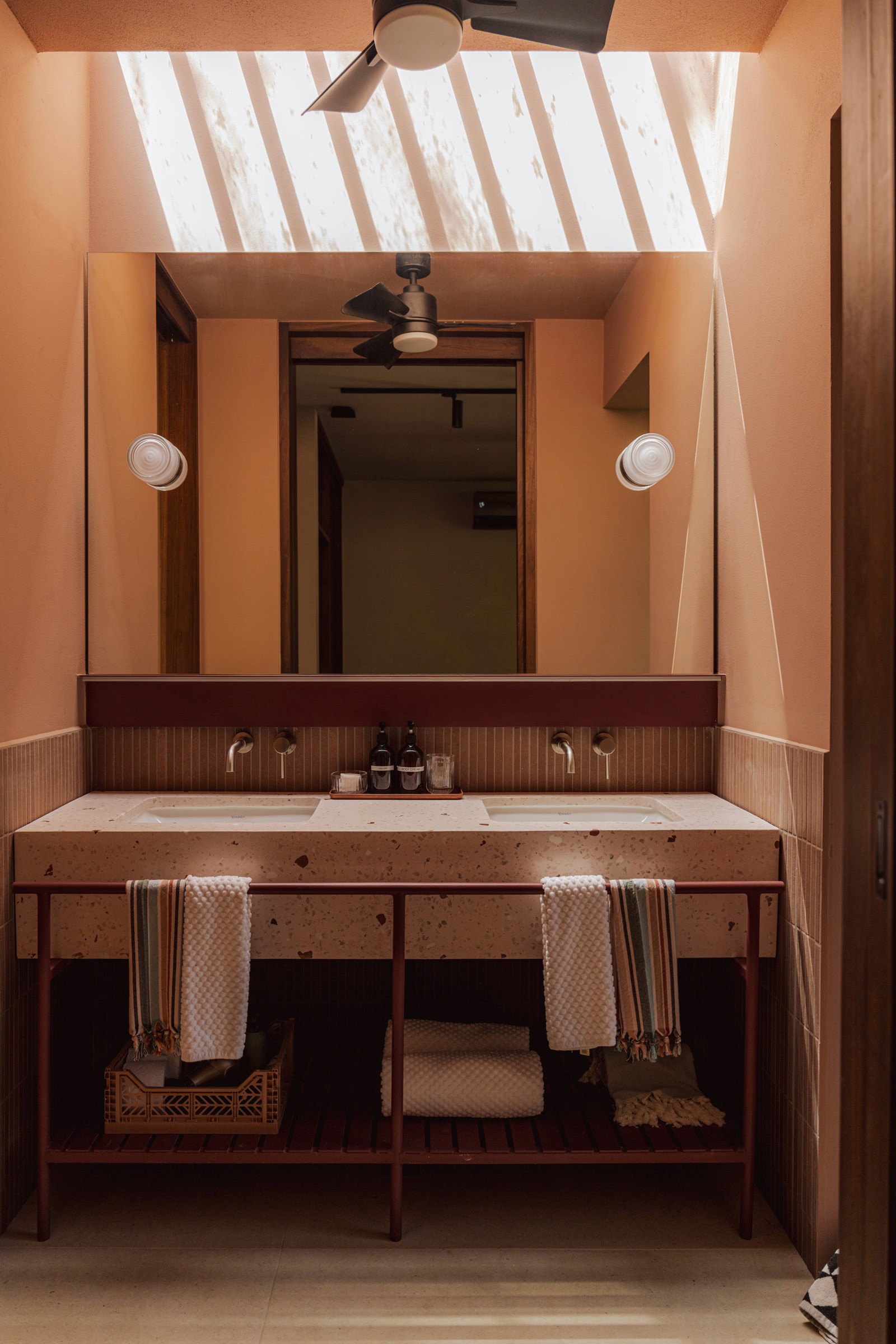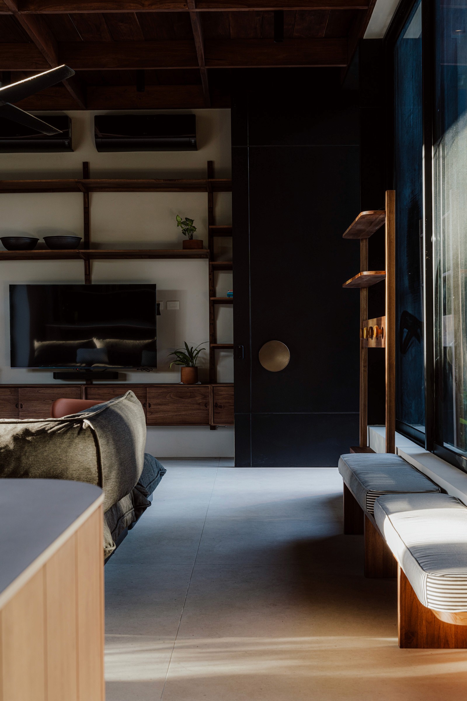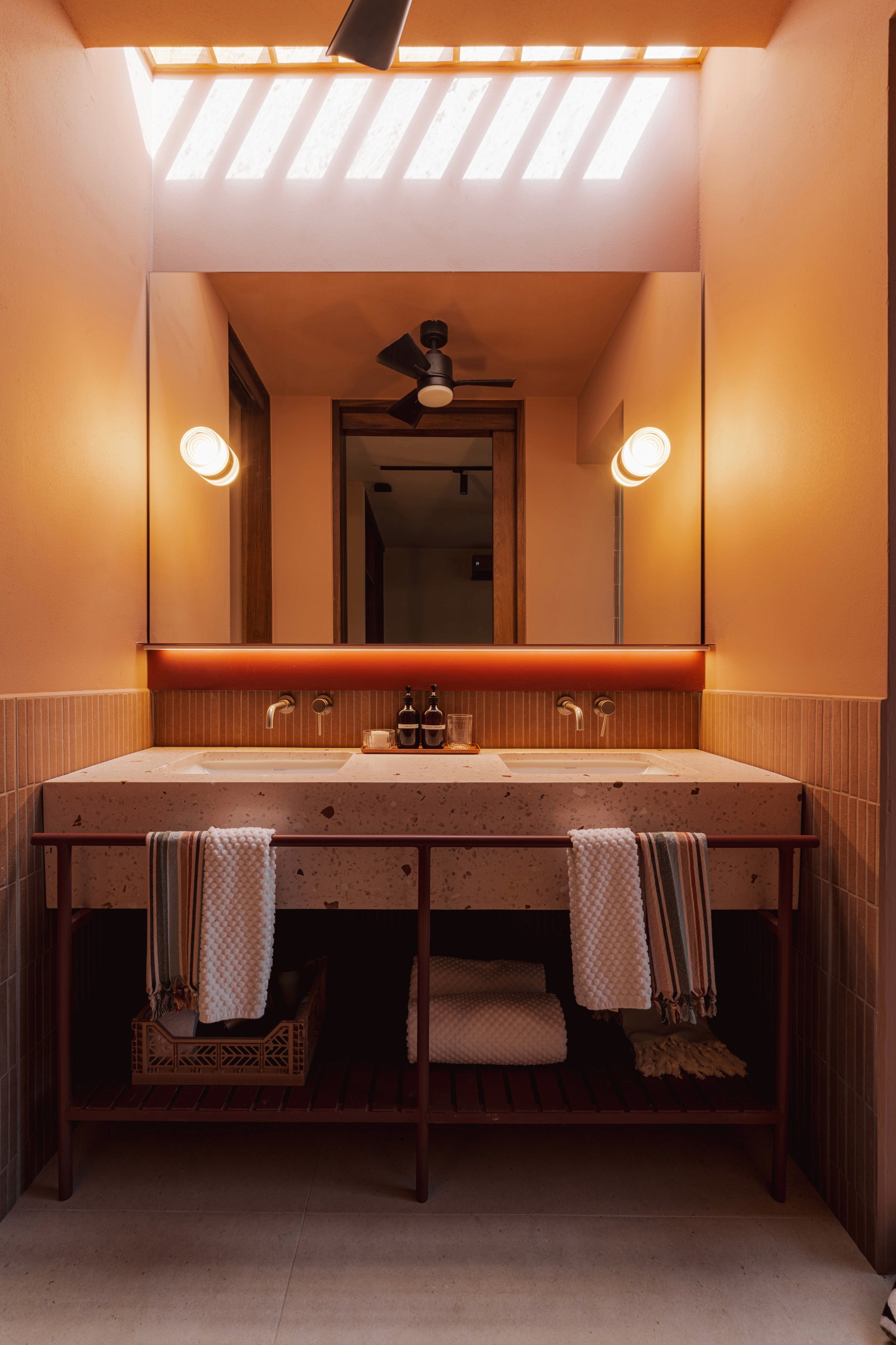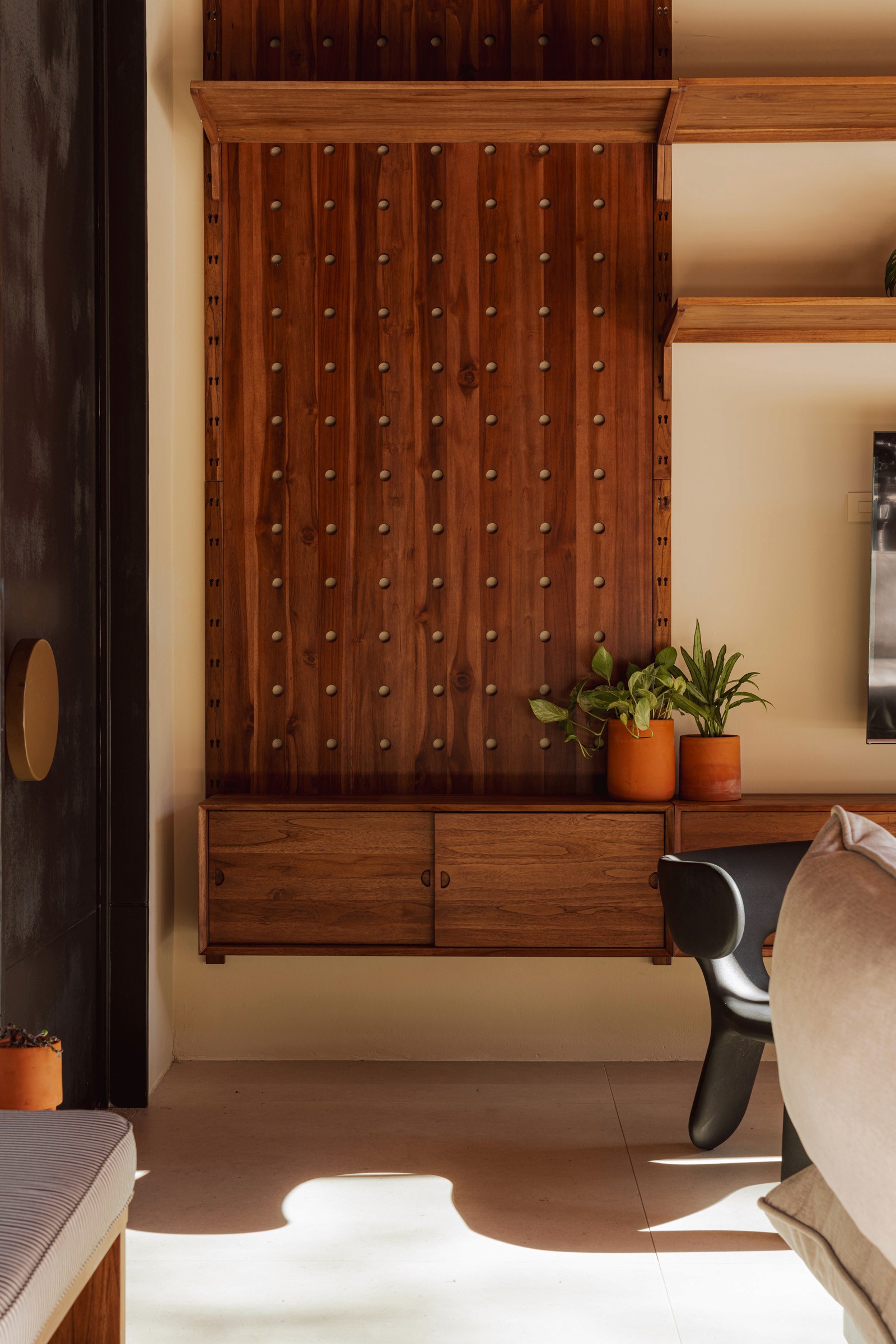 A pair of tropical homes designed to merge architecture, interiors, and landscape into one seamless experience. Two interconnected volumes balance solidity and openness, using textured masonry and vertical wood screens to frame light, breeze, and views of the surrounding forest. Taller Ken crafted the interior design with a warm, tactile palette—natural hardwoods, handcrafted tiles, terrazzo, and custom millwork—creating spaces that feel refined yet deeply connected to place. Sliding glass panels extend the social areas into shaded terraces and outdoor dining spaces, embracing Nosara’s climate and lifestyle. Casa Kallo is a relaxed, immersive retreat shaped by materiality, light, and the rhythms of coastal living.