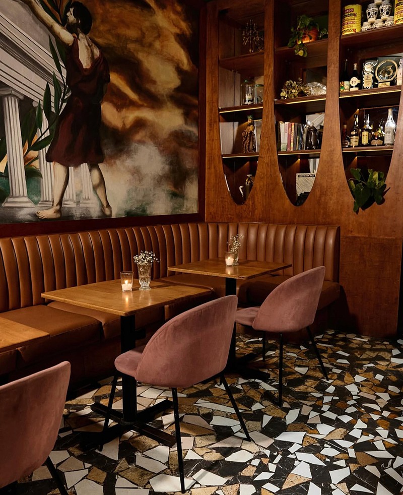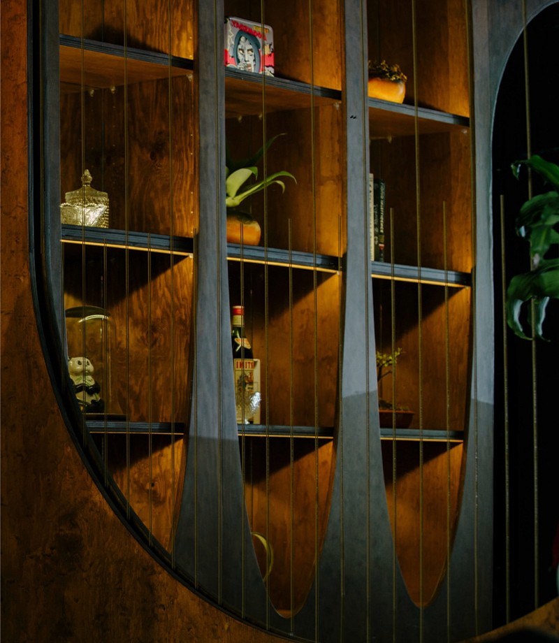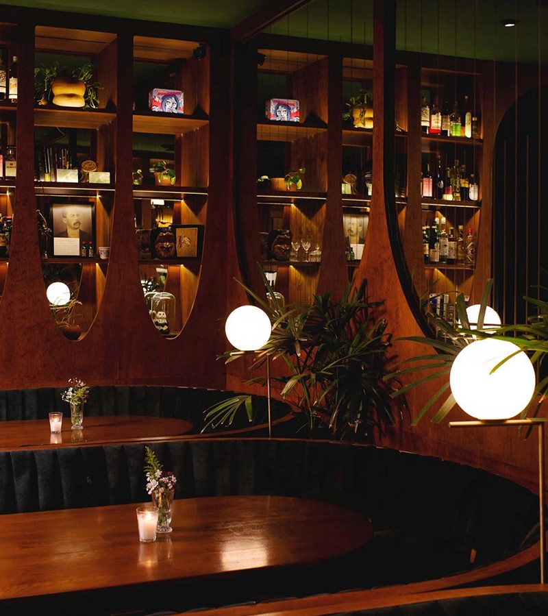 Cocktail culture meets spatial delight in this social setting—where material richness and subtle theatricality animate the bar experience and encourage convivial gathering.