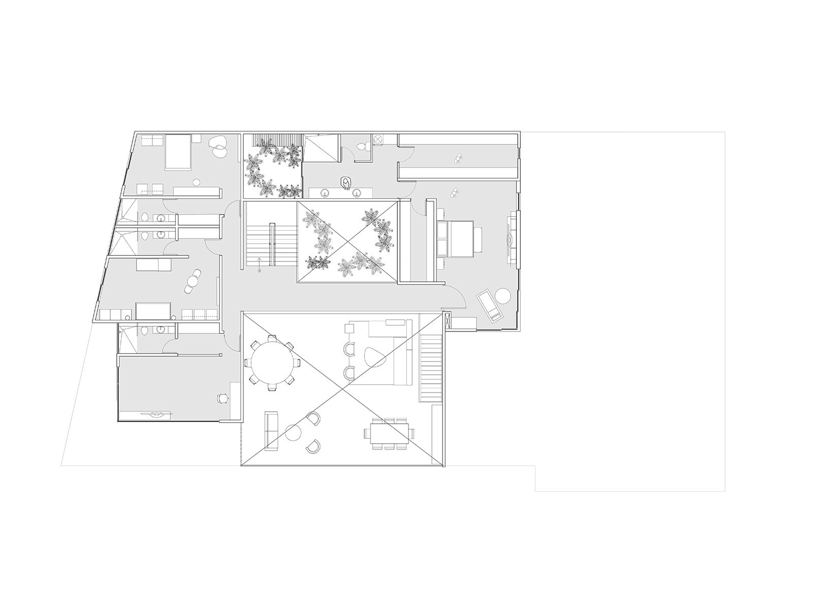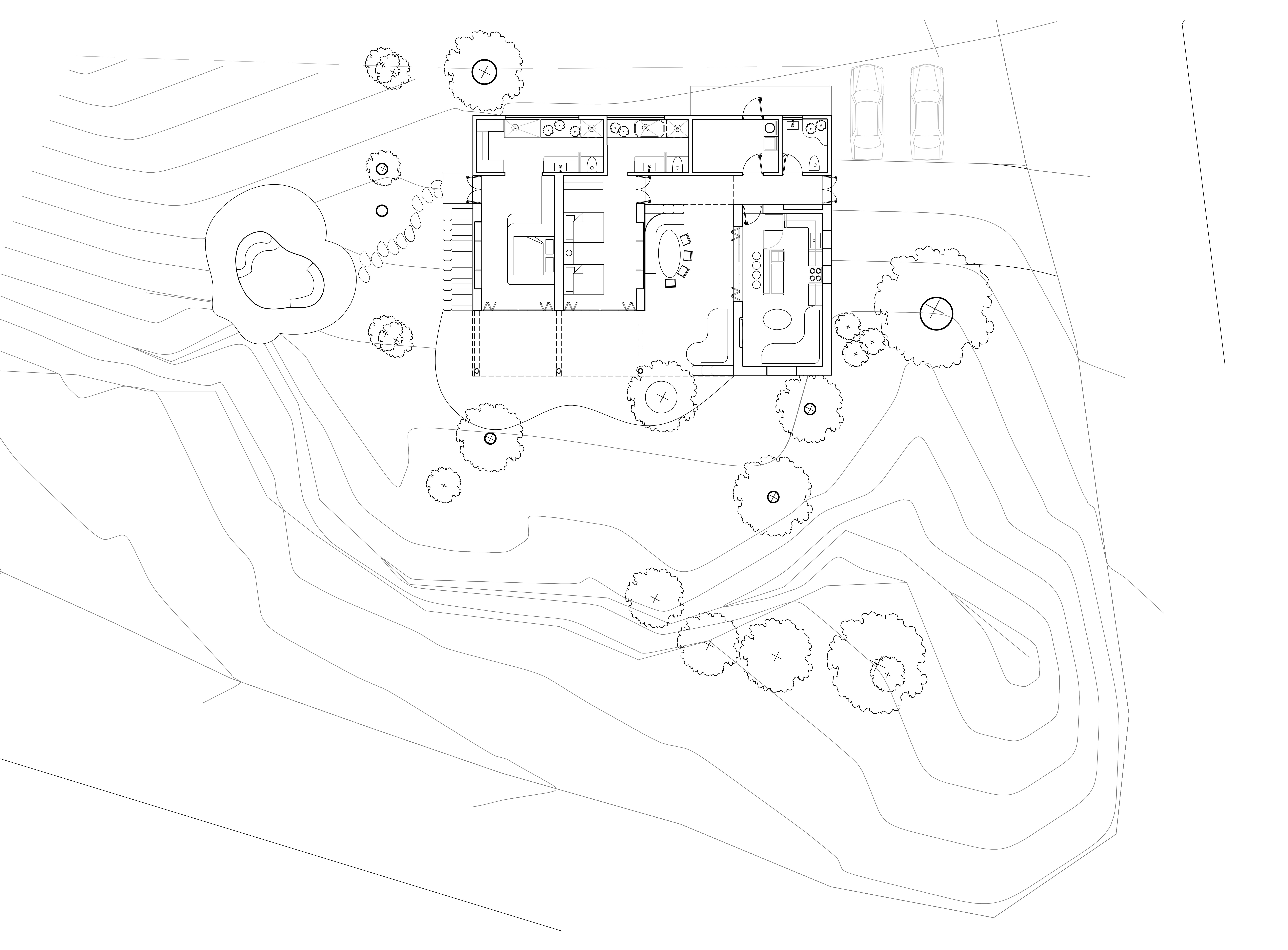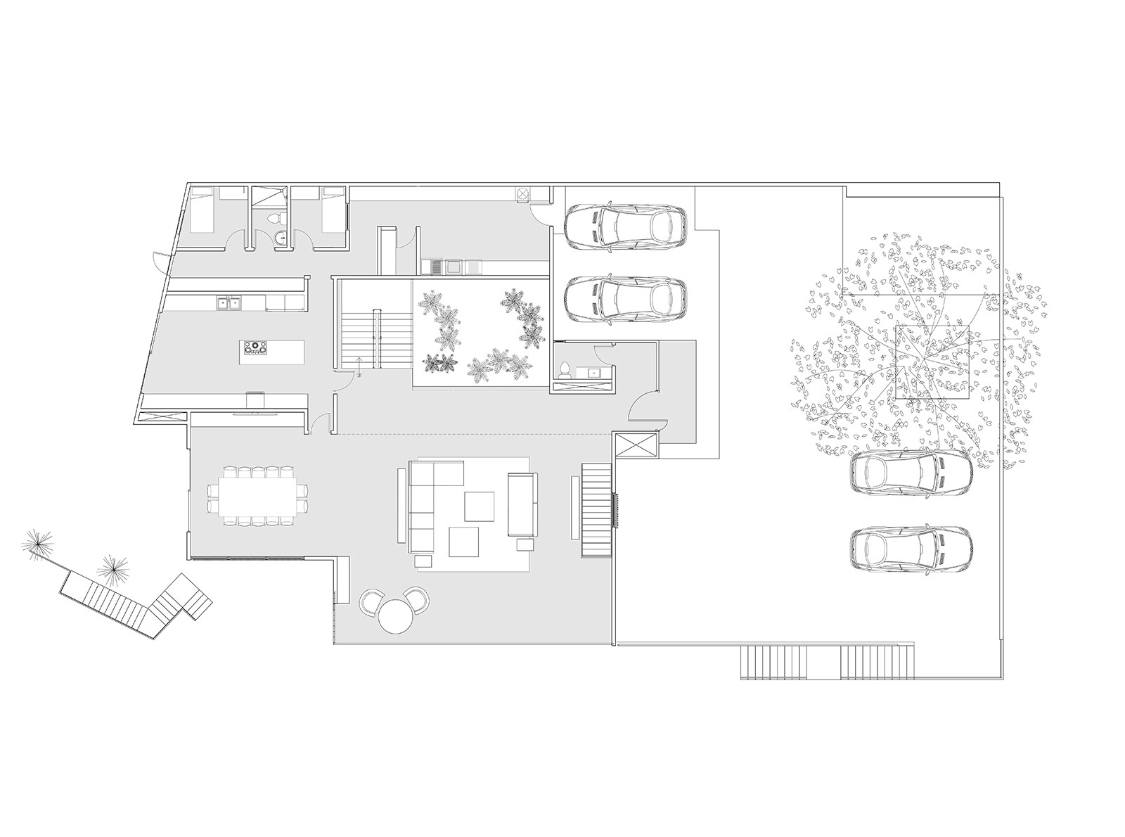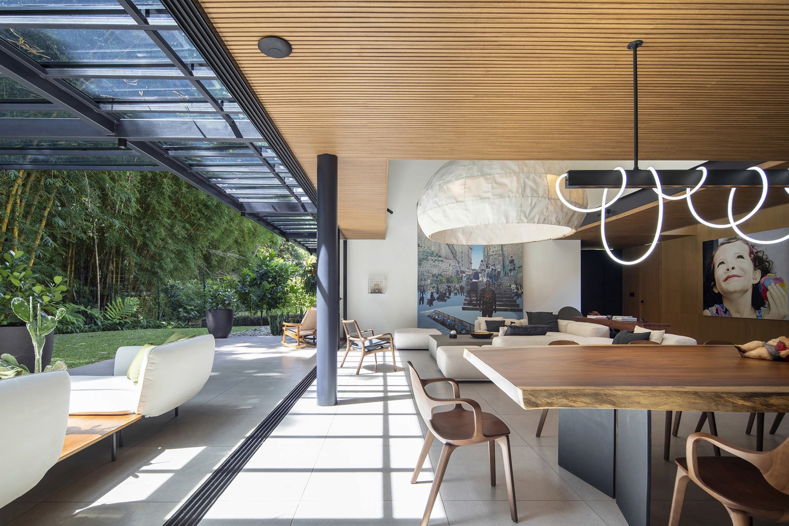 Expansive glazing dissolves boundaries between interior and landscape, drawing nature into daily life. In private areas, darker materials and controlled light create a contemplative atmosphere, transforming bathing and rest into immersive experiences. The project balances precision with warmth, creating a home that feels expressive yet grounded—an environment designed for connection, comfort, and discovery.